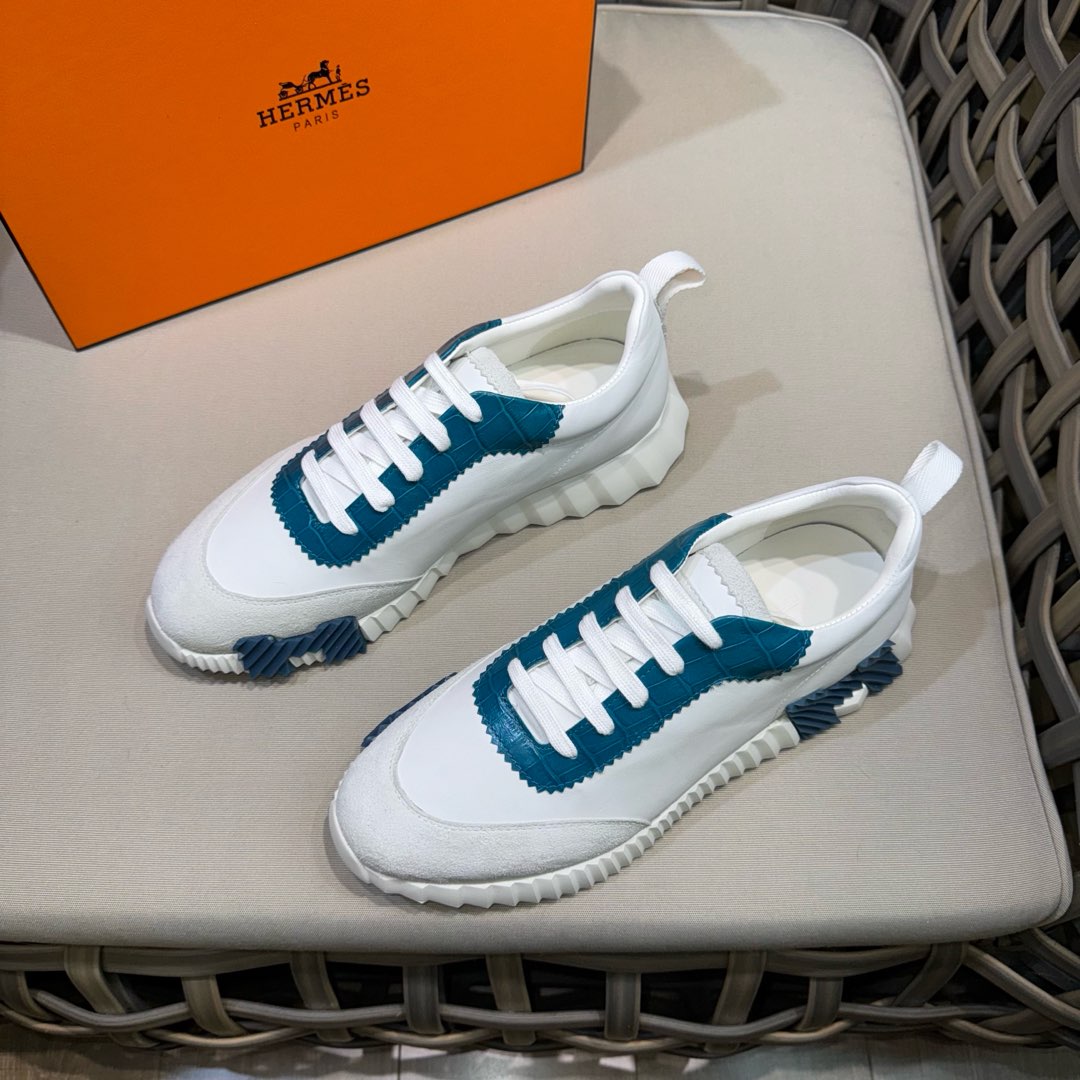 HM Men's Bouncing Sneaker White Blue Calfskin Suede