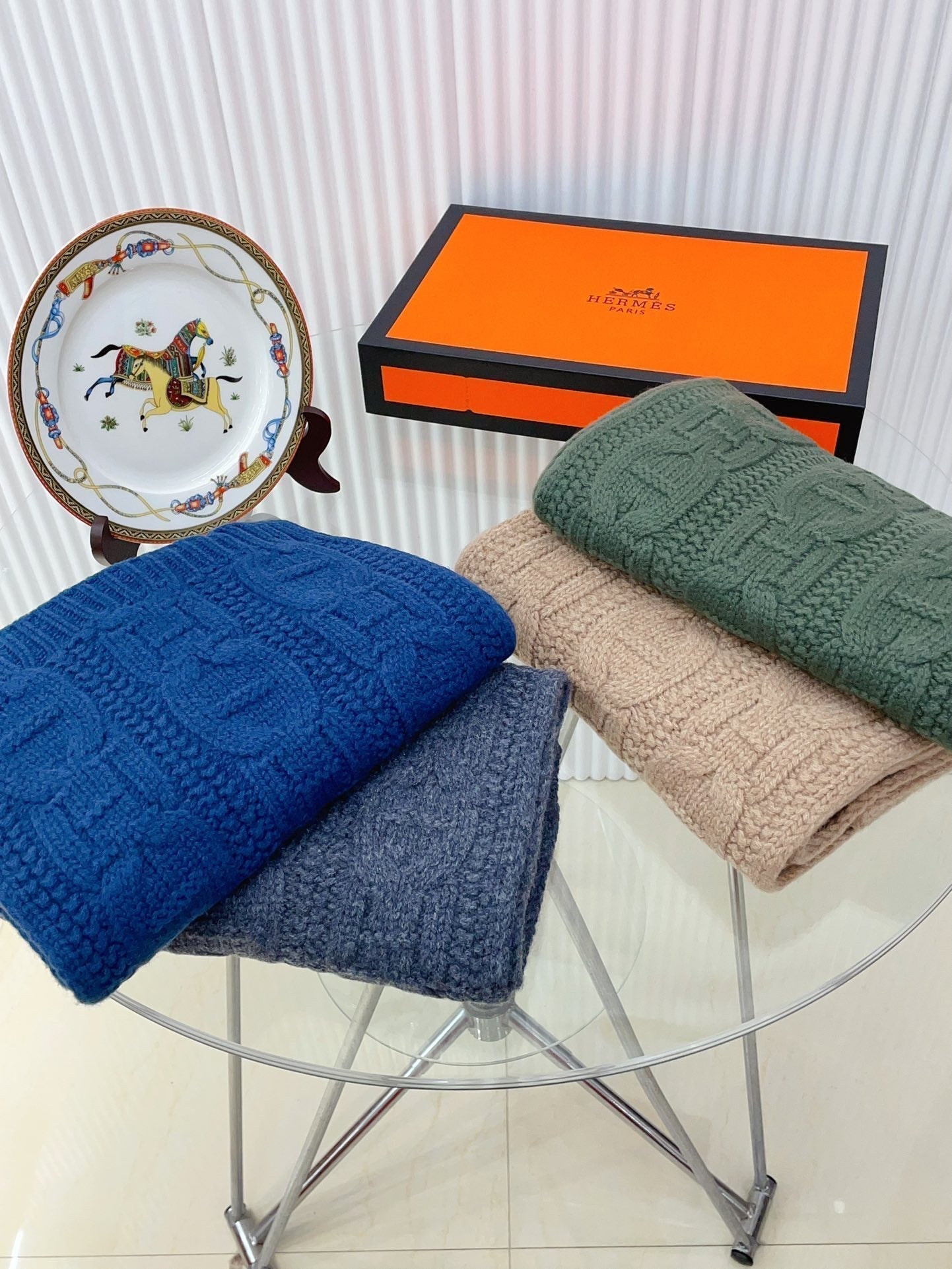 Faubourg Muffler Scarf 170 CM Khaki Green Cashmere Handwoven 356203