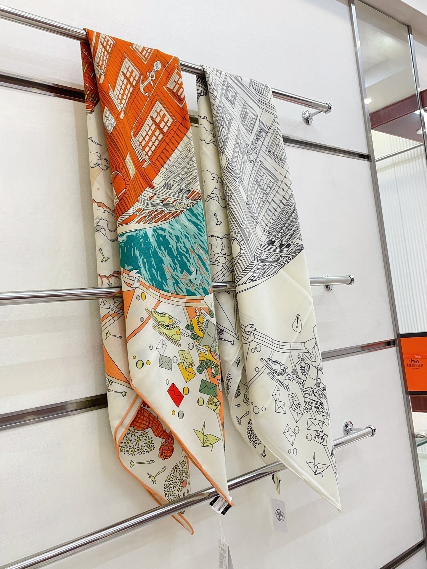 Flagship Scarf 135 CM White Grey Cashmere And Silk 402078