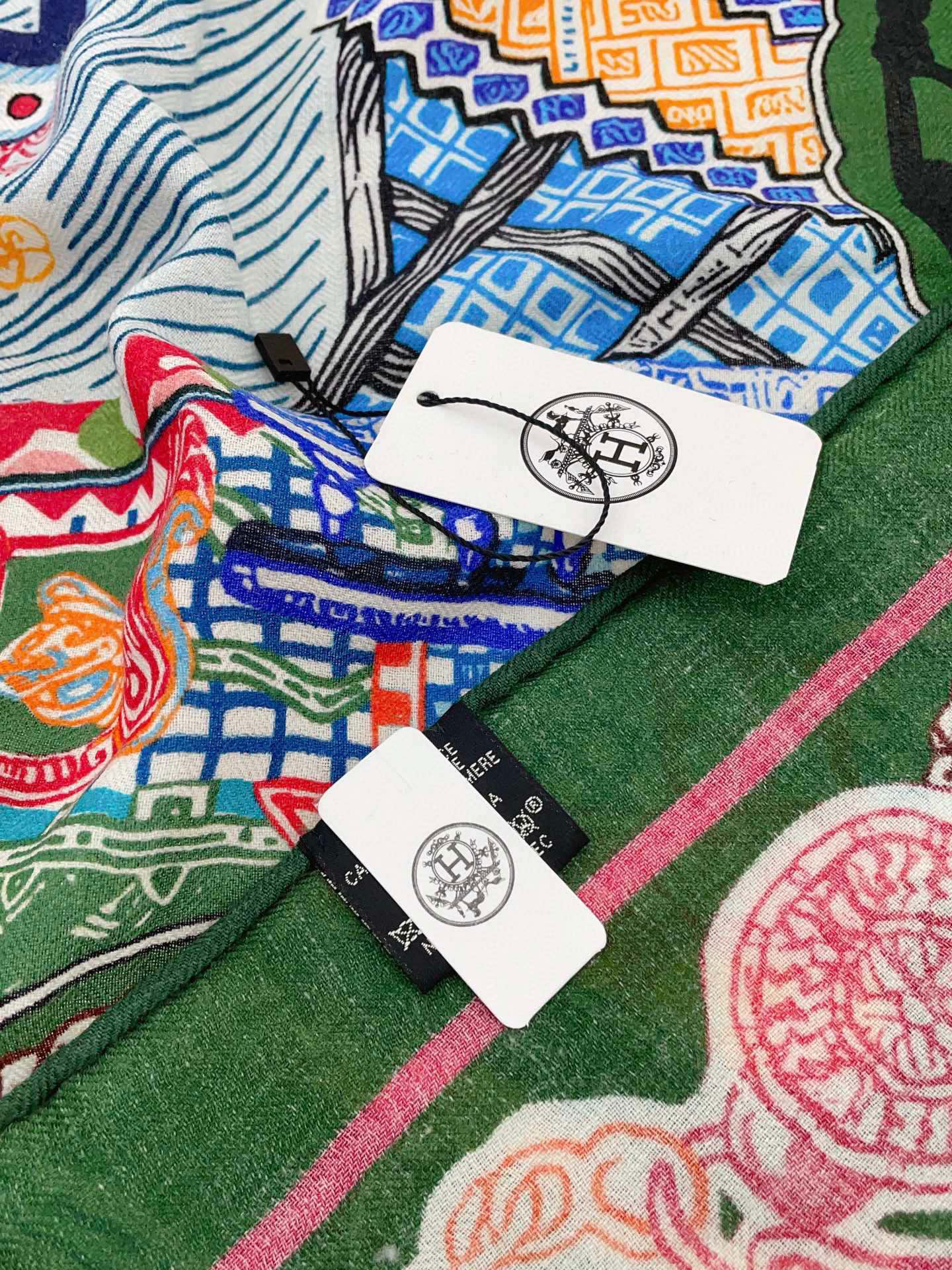 Gavroche Super Silk Quest Détail Scarf 140 CM In Green Colorful Cashmere And Silk 236108