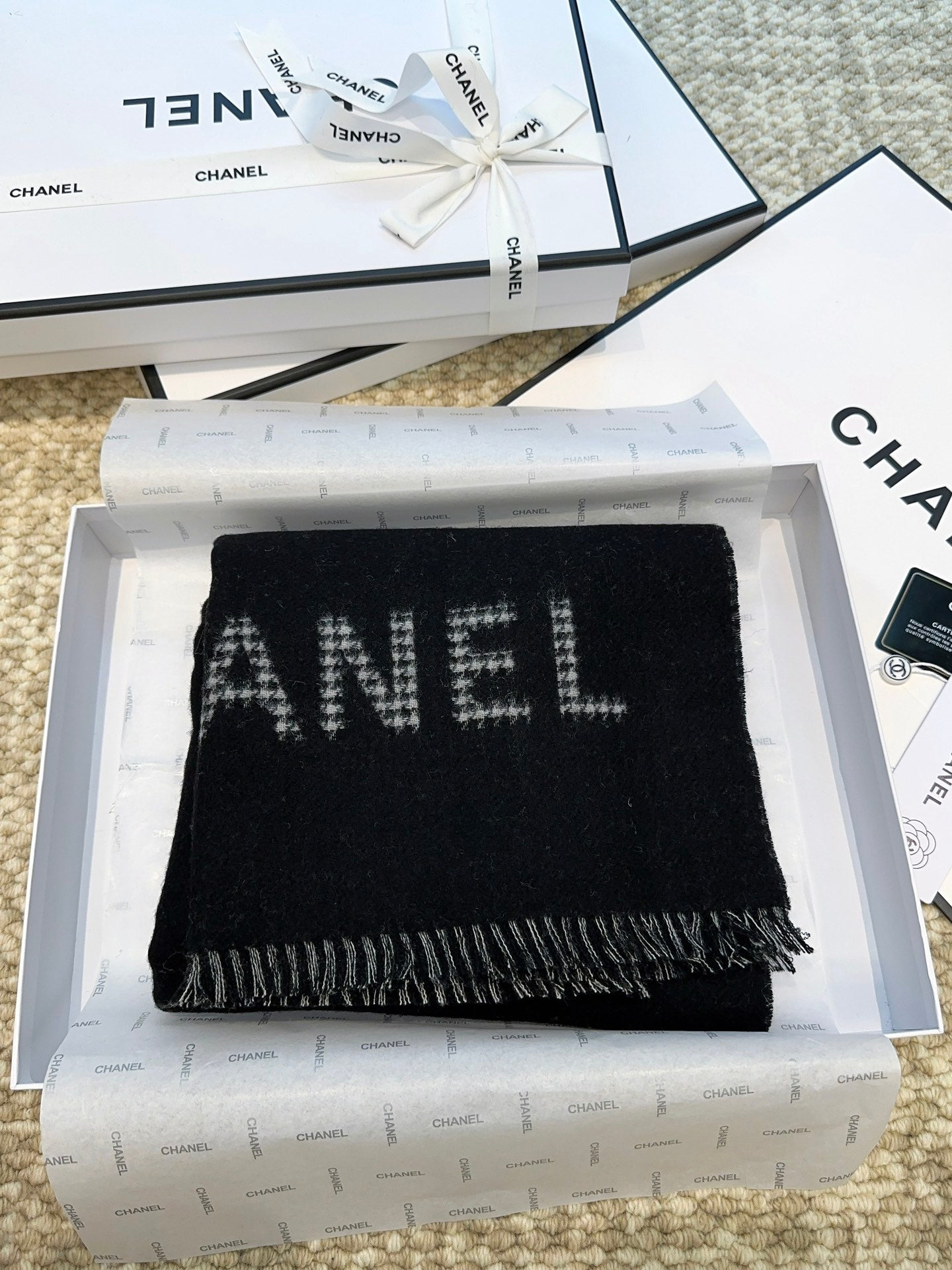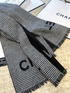 HOUNDSTOOTH SCARF 185 CM IN BLACK CASHMERE 393123