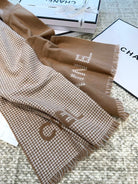 HOUNDSTOOTH SCARF 185 CM IN CAMEL BROWN CASHMERE 393124