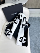 SCARF 120 CM IN BLACK MIX WHITE CASHMERE AND FUR 396432