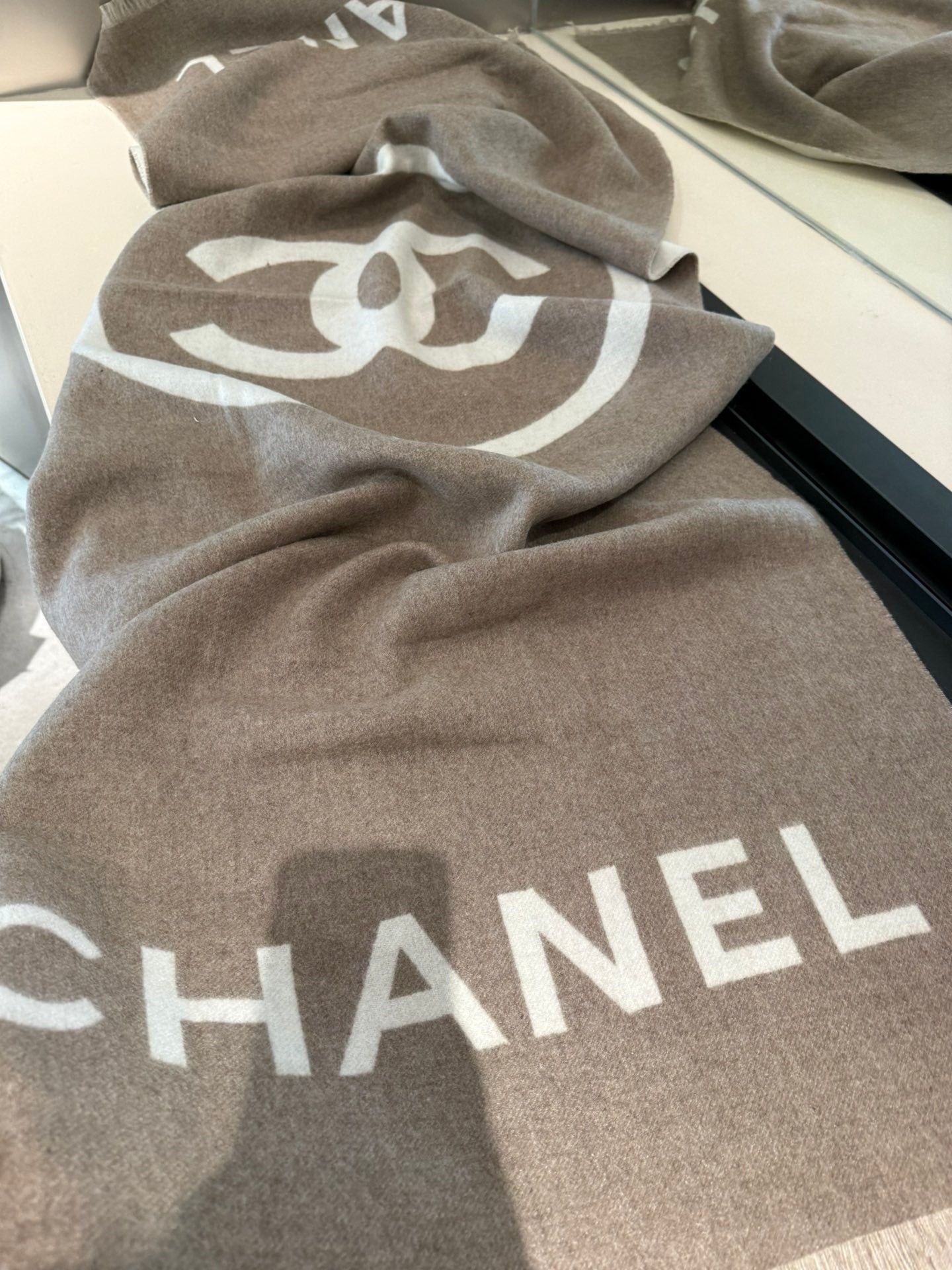 SCARF 200 CM IN MEDIUM BROWN MIX WHITE CASHMERE AND WOOL 401298