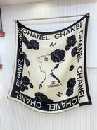 SQUARE SCARF 140 CM IN BLACK MIX WHITE CASHMERE AND SILK 389993