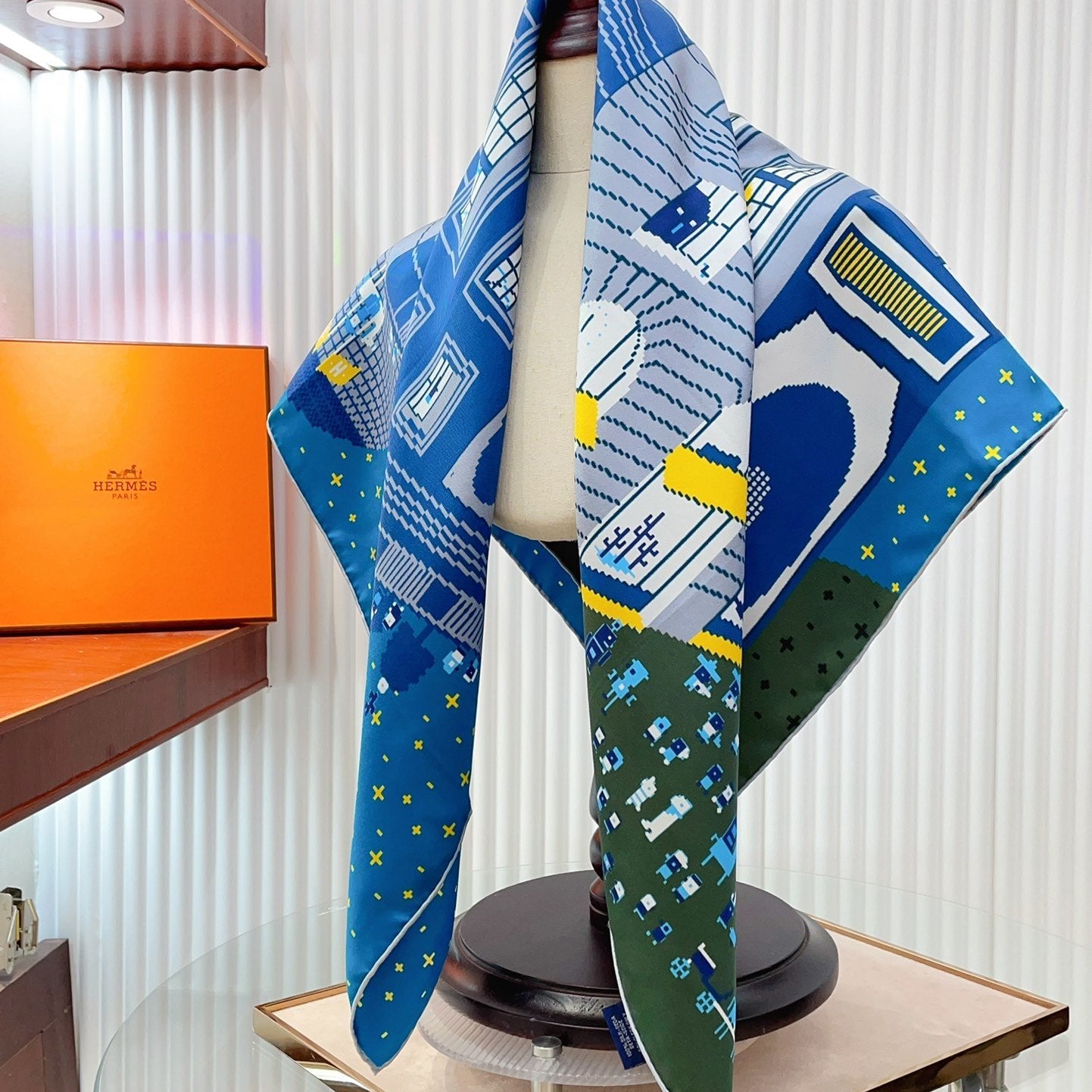Flagship Silk Scarf 90 CM Charcoal Blue Colorful