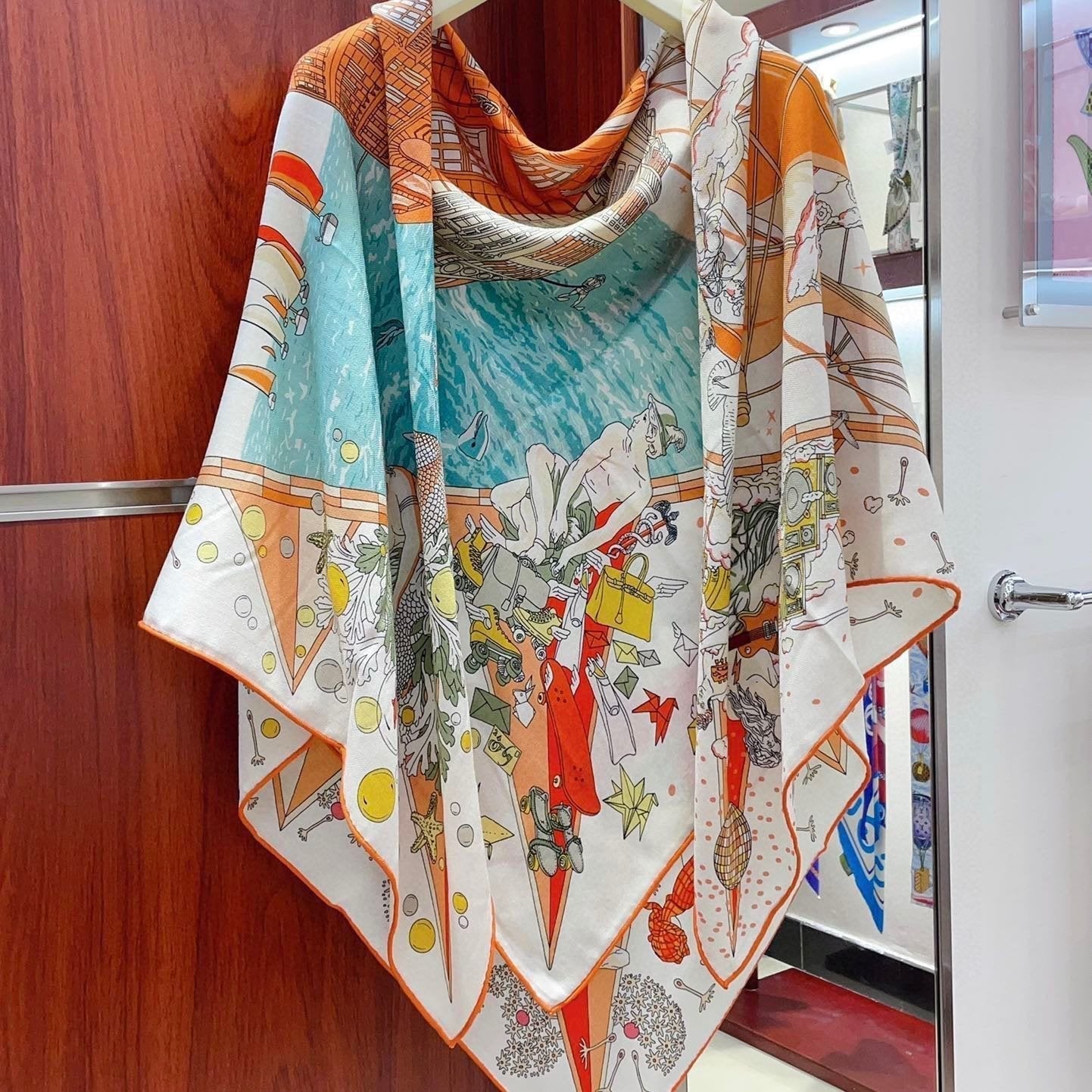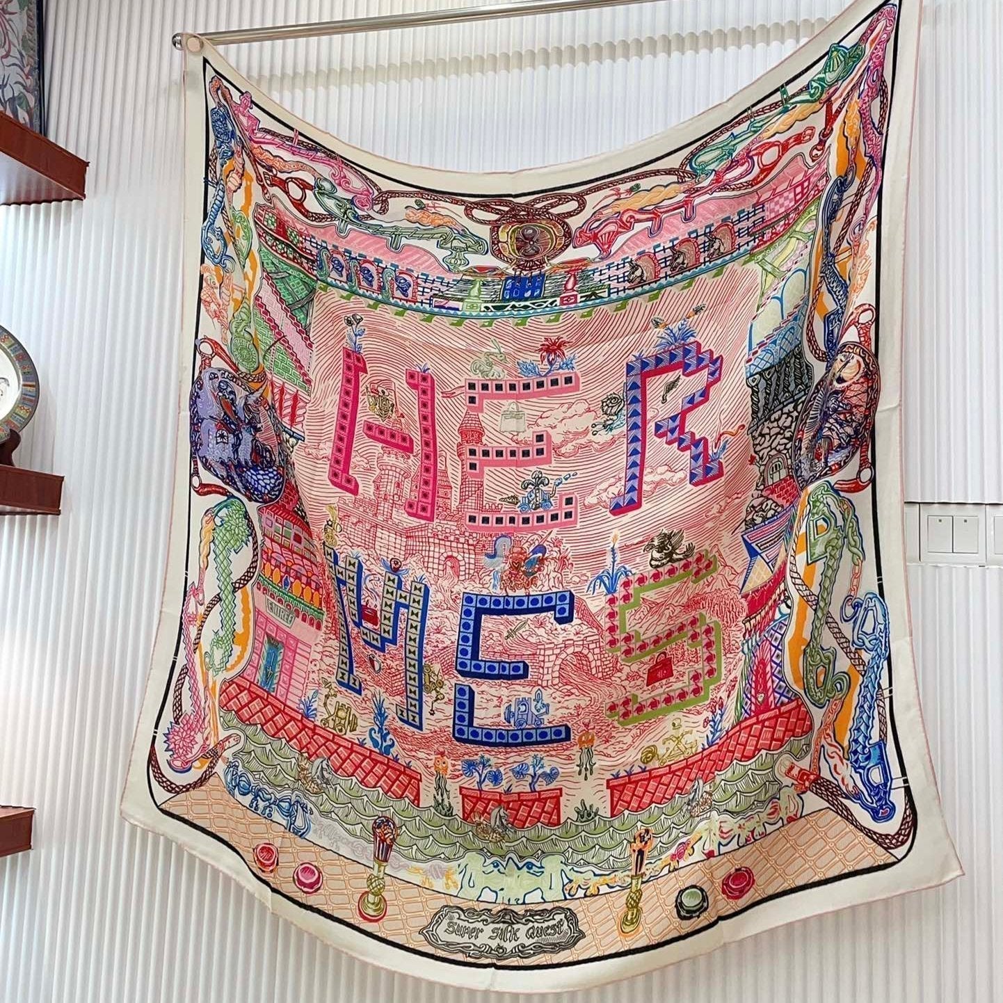 Flagship Silk Scarf 90 CM Pink Orange Colorful