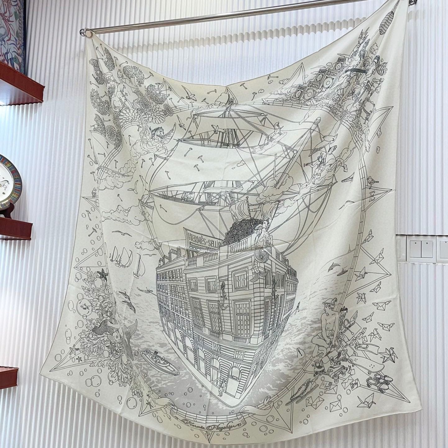 Faubourg Tropical Scarf 135 CM Grey White Cashmere And Silk