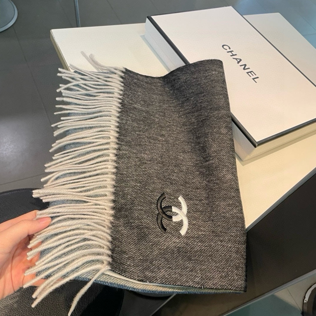 SCARF 180 CM IN DARK GRAY AND LIGHT GRAY WOOL AND CASHMERE 411839