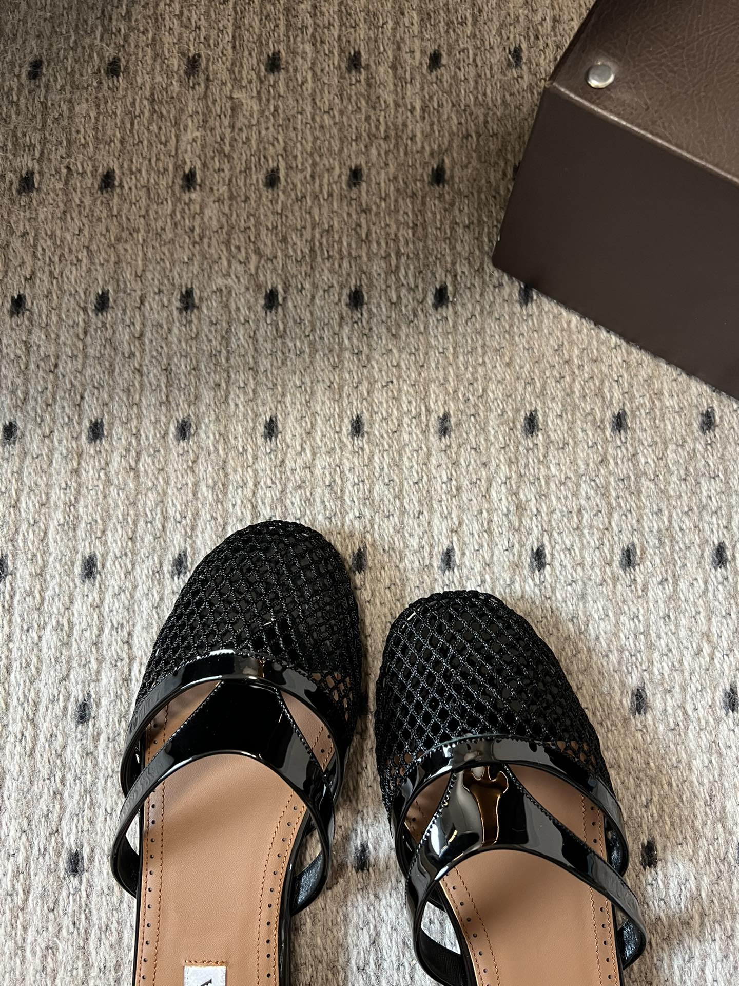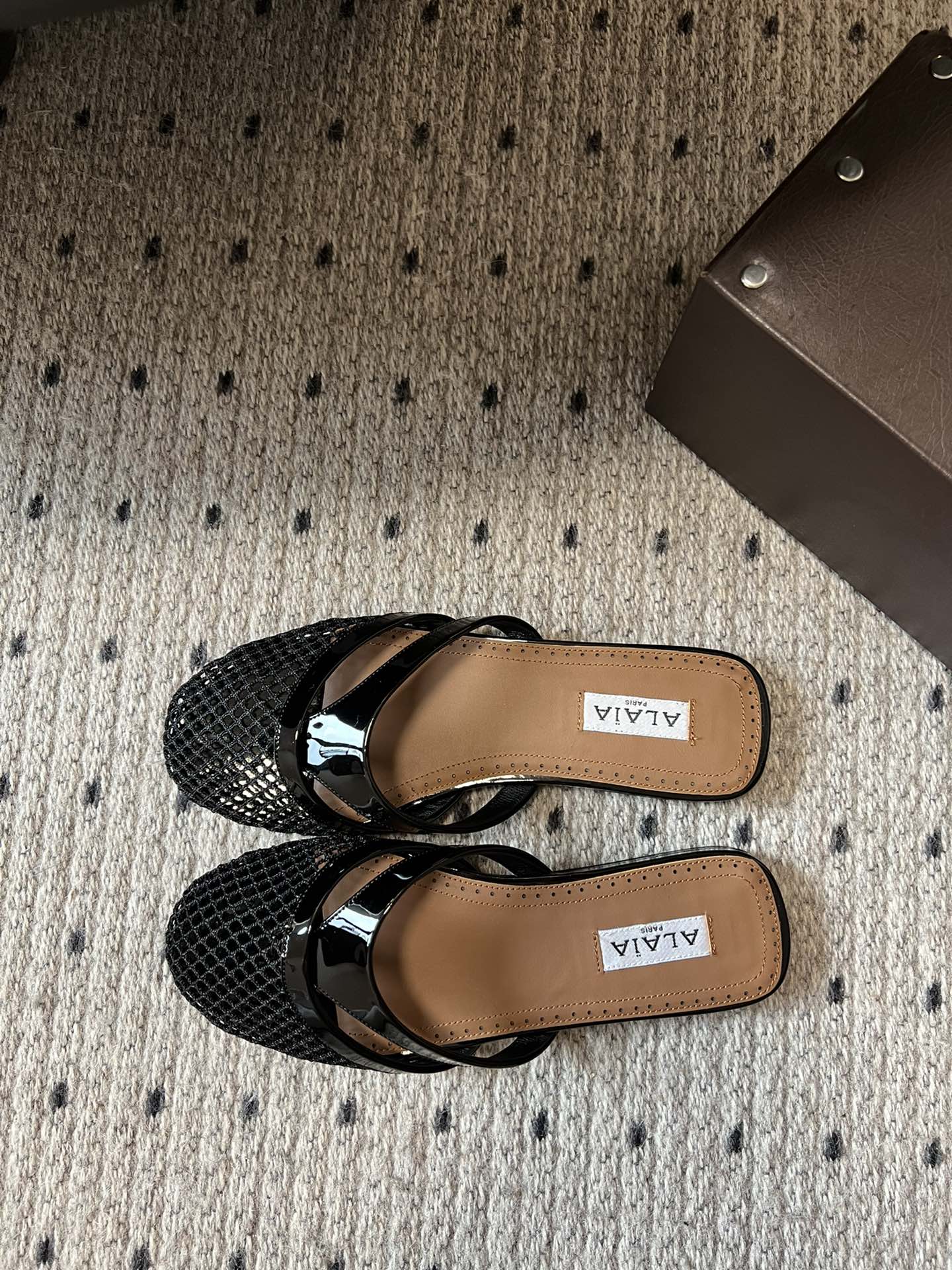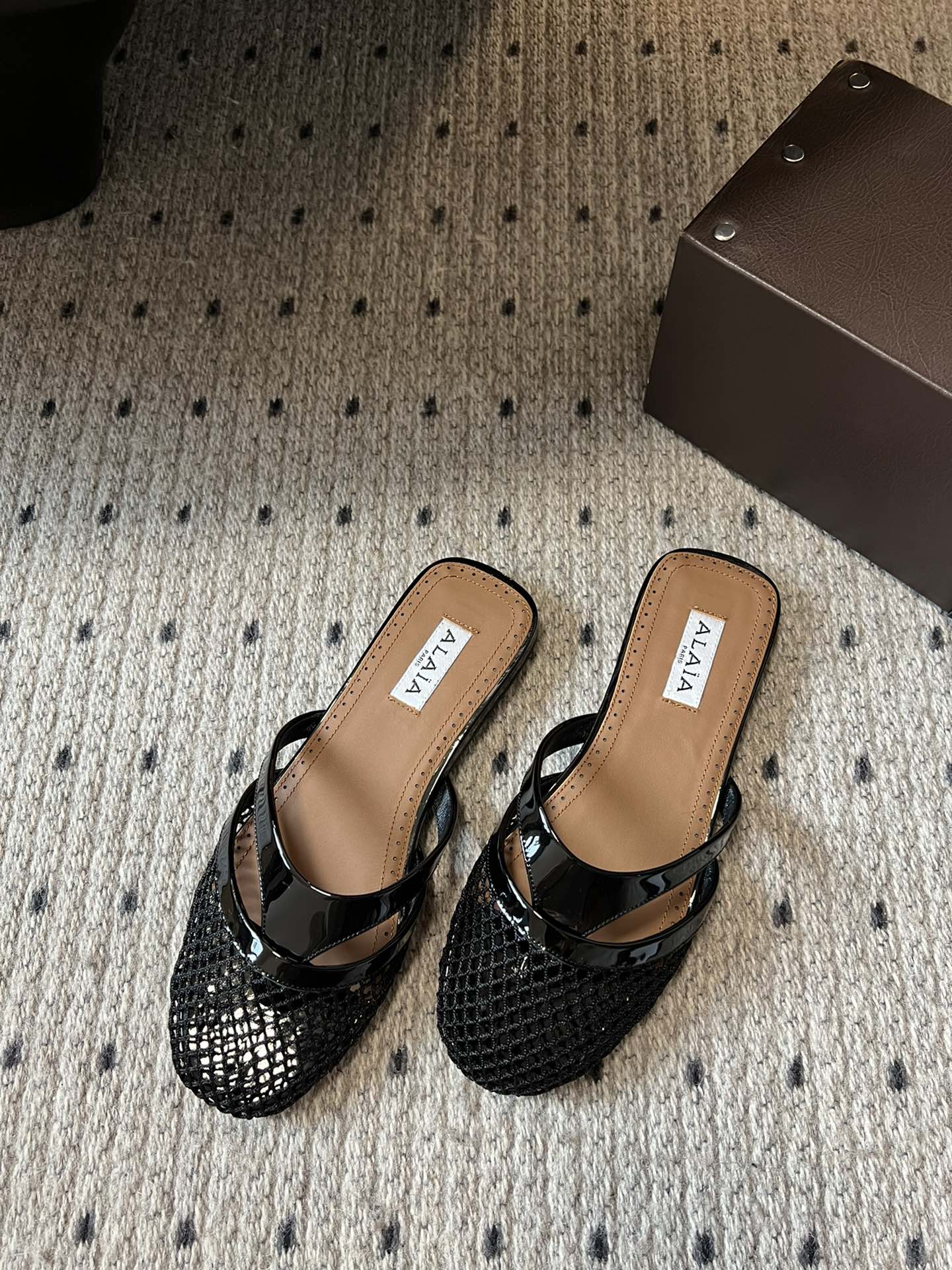 Alaia 25 Infradito Fishnet Flat Mules Black Lampskin 303708