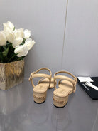 BLOCK HEEL 5 CM SANDAL IN SAND BROWN LAMBSKIN