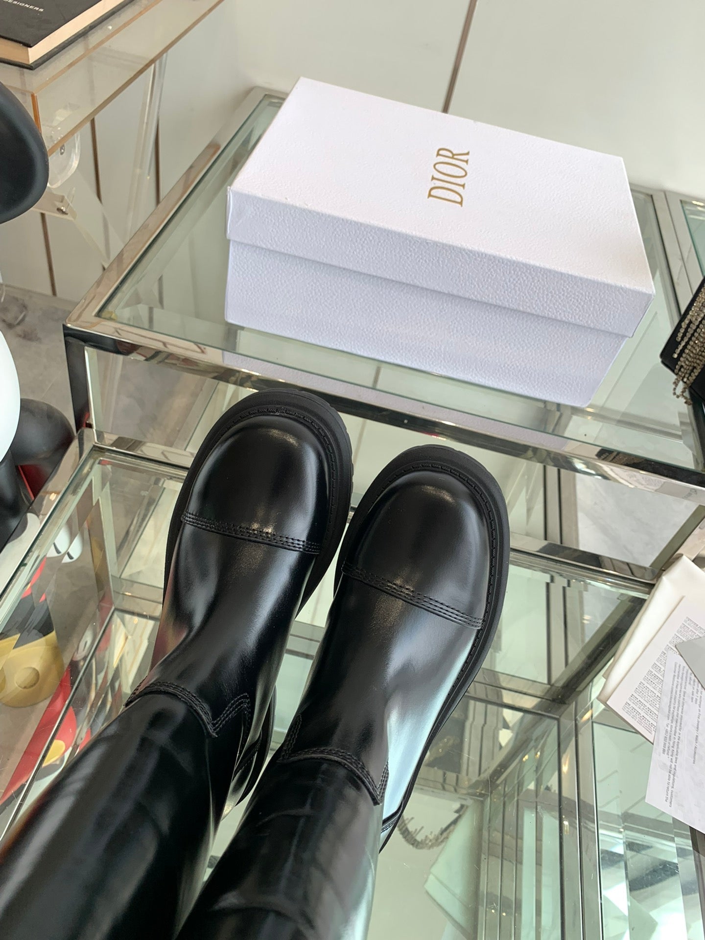 CD Diorebel Boot Glossy Black Calfskin