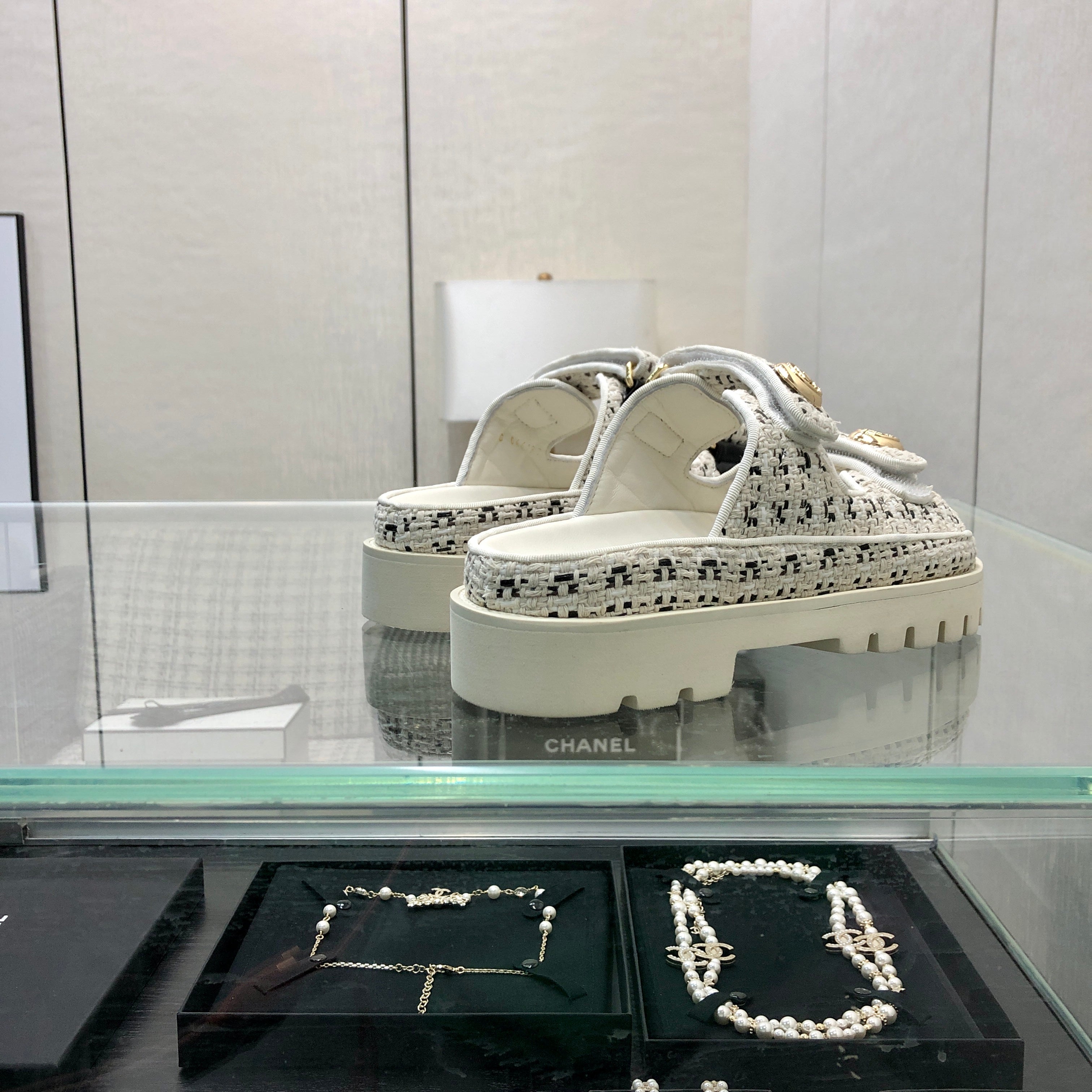DAD SANDAL MULE IN WHITE MIX BLACK TWEED FABRIC