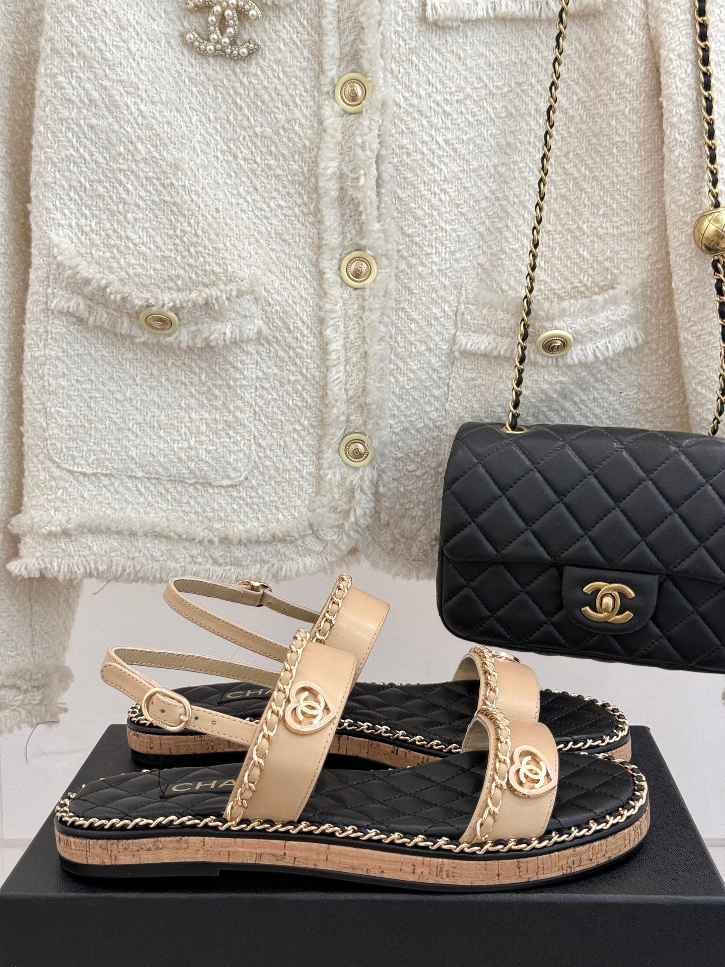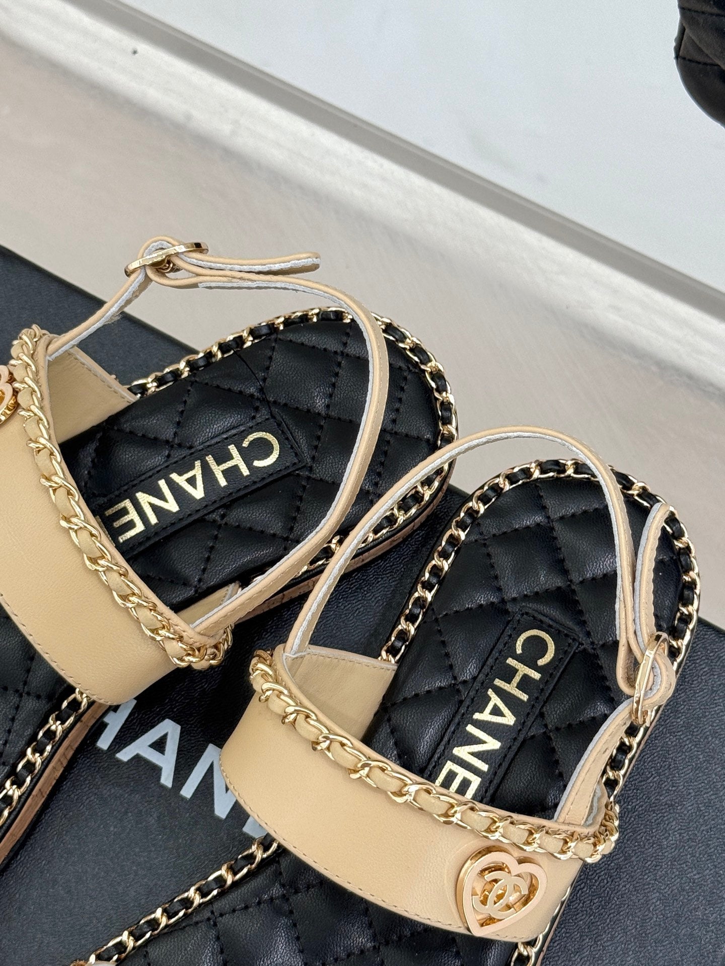 FLAT CHAIN HEART SANDAL IN BISQUE BEIGE LAMBSKIN