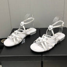 FLORAL FLAT SANDAL IN WHITE LAMBSKIN