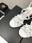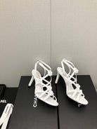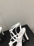 FLORAL HIGH HEEL SANDAL IN WHITE LAMBSKIN