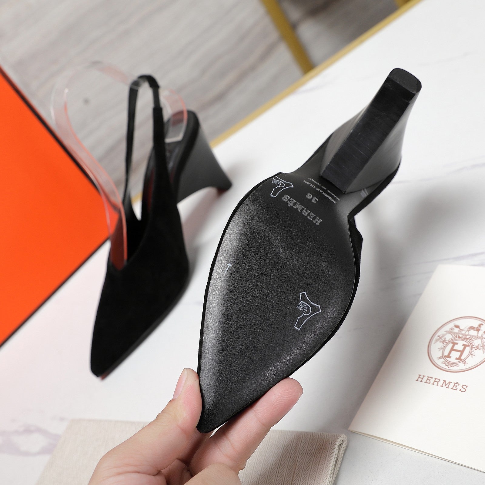 HM Classic High-Heeled Slingback 70mm Black Suede Sheepskin 547643