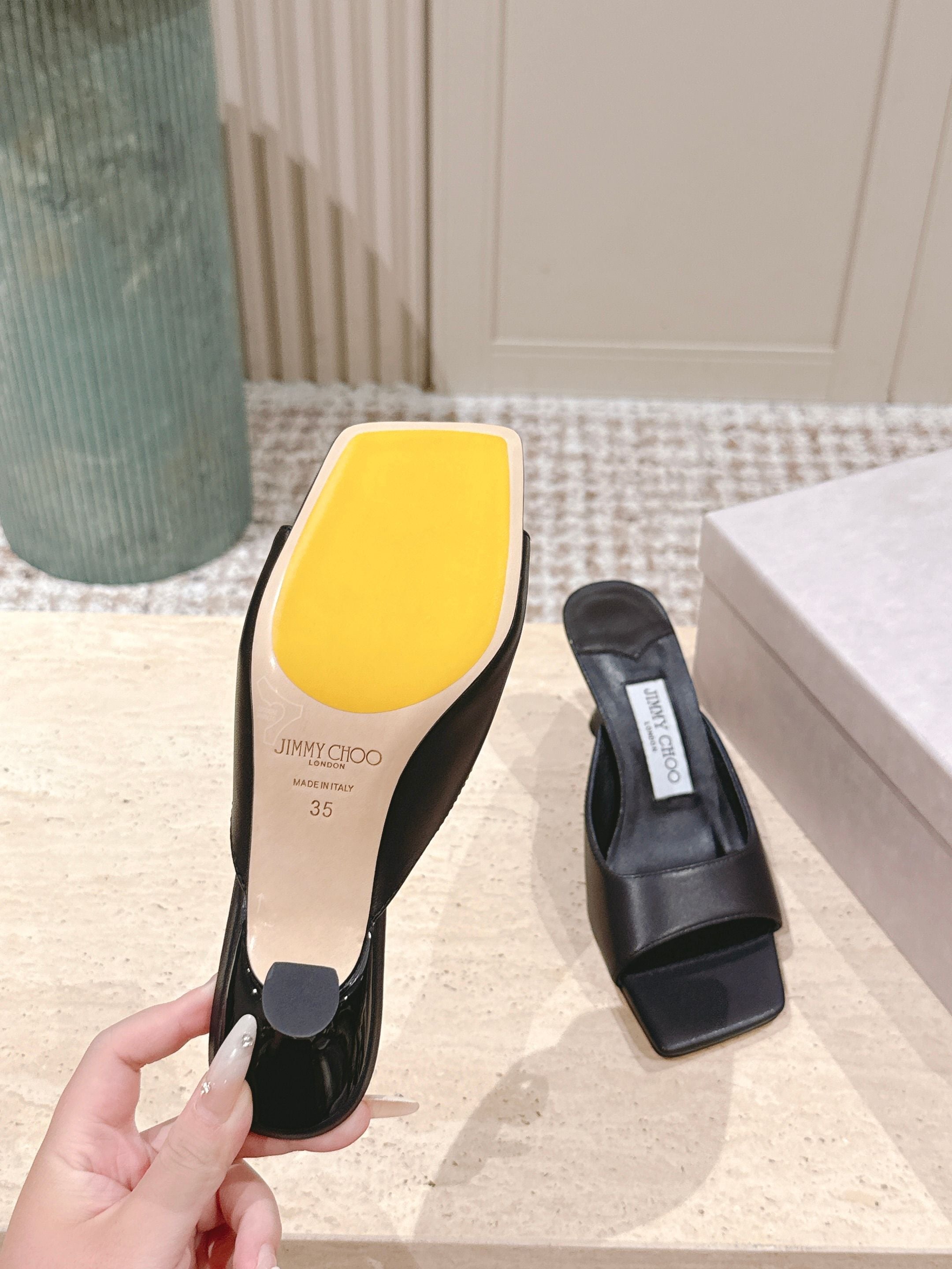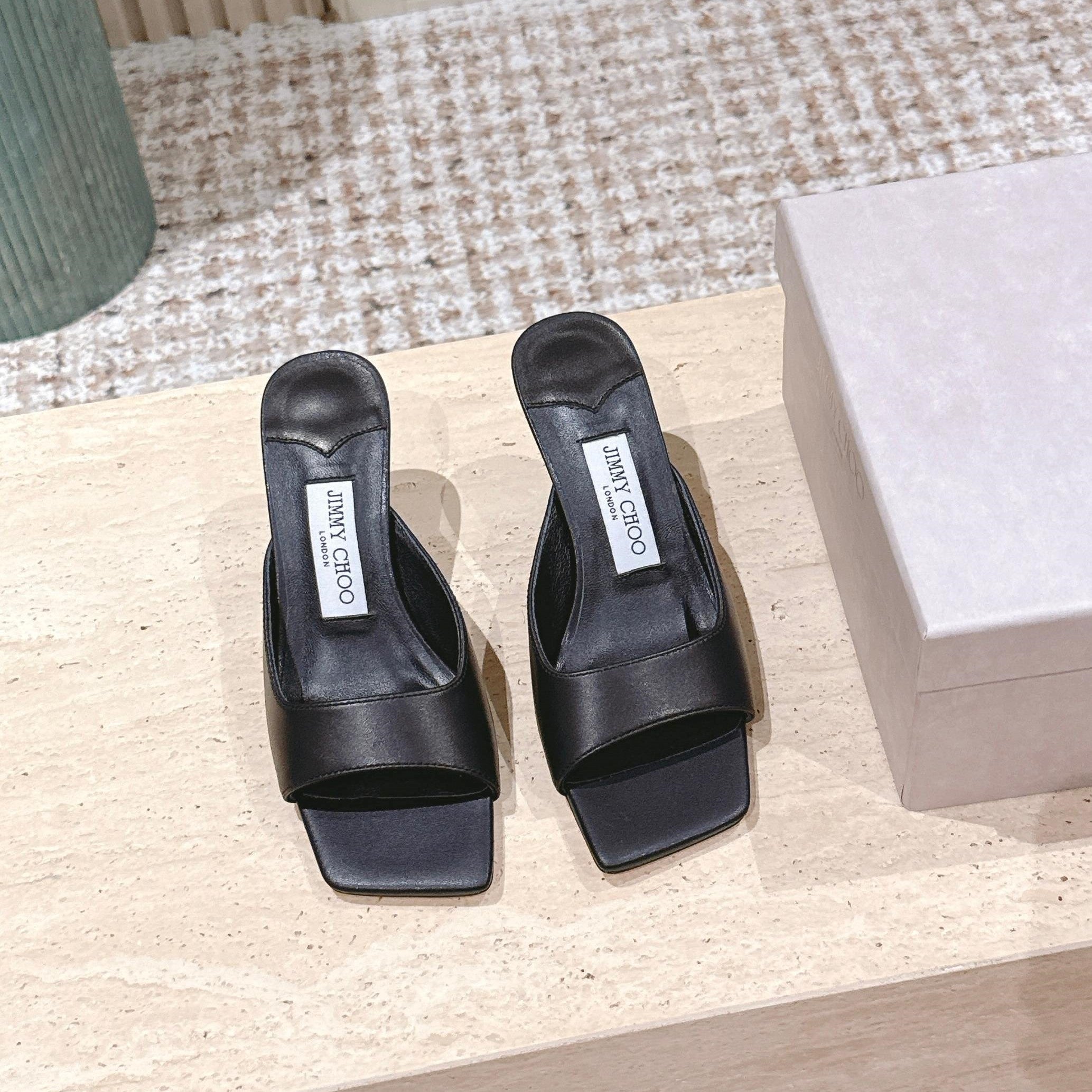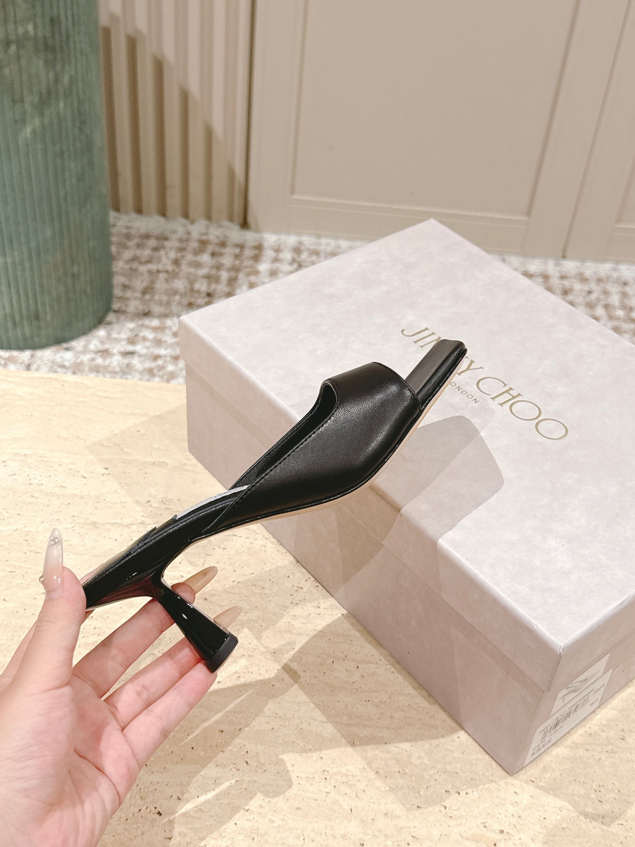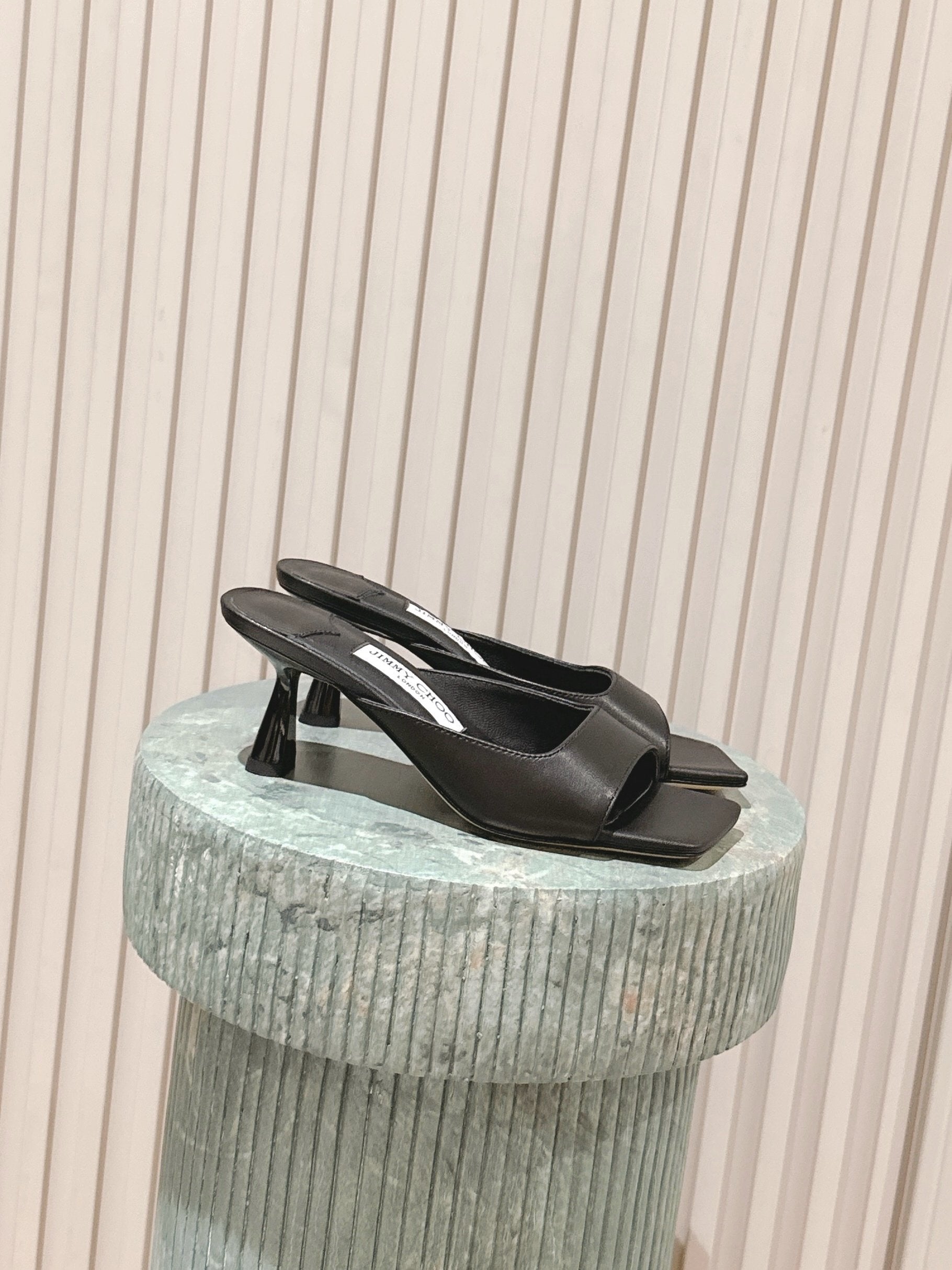 Jimmy 25s Skye Satin Mules 70mm Black Leather 431870