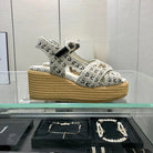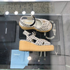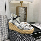 PEEP-TOE THICK SOLE SANDALS IN WHITE MIX BLACK WOVEN FABRIC