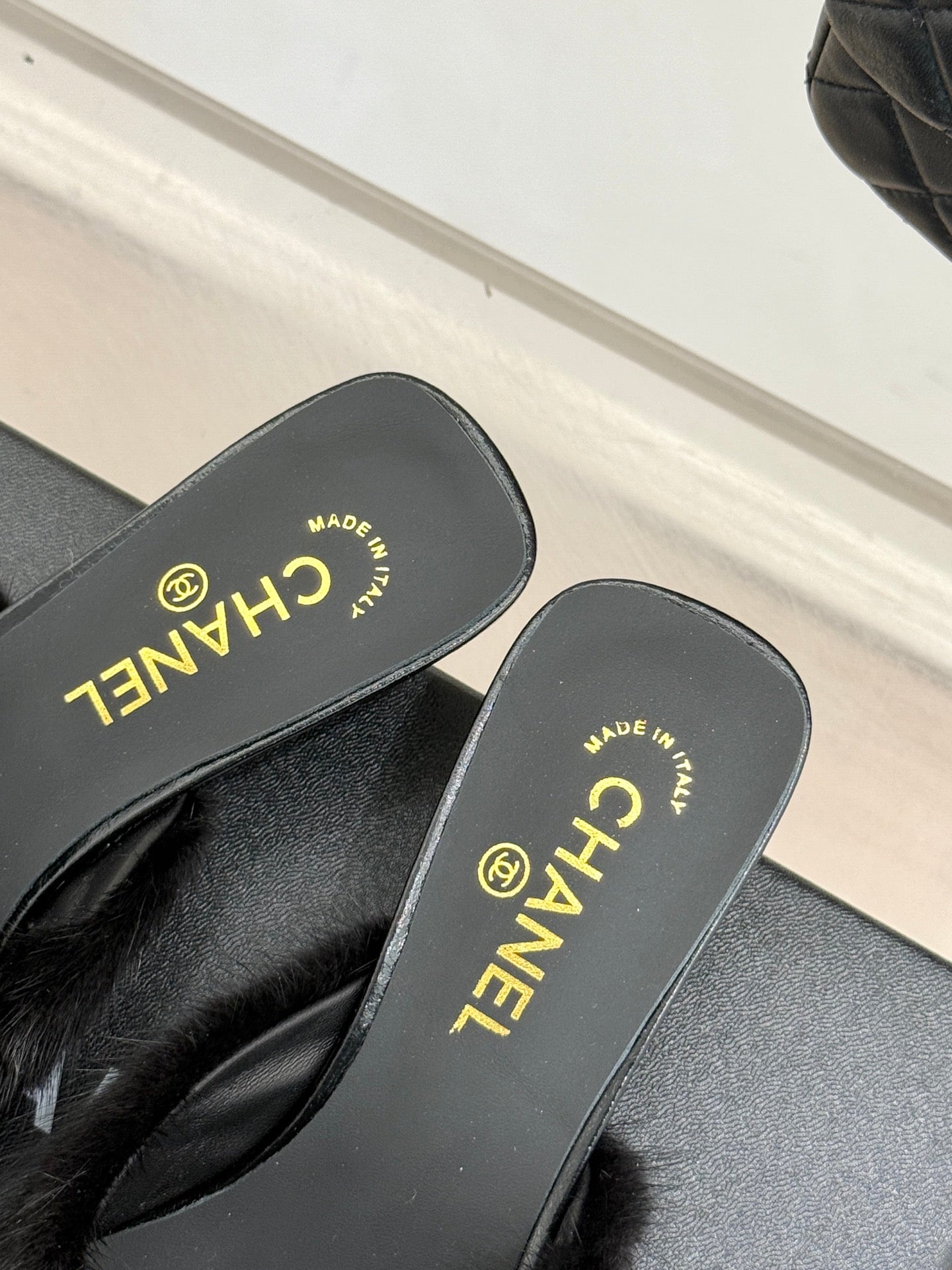 RABBIT FUR POINTED-TOE MULE IN BLACK LAMBSKIN