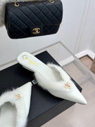 RABBIT FUR POINTED-TOE MULE IN WHITE LAMBSKIN