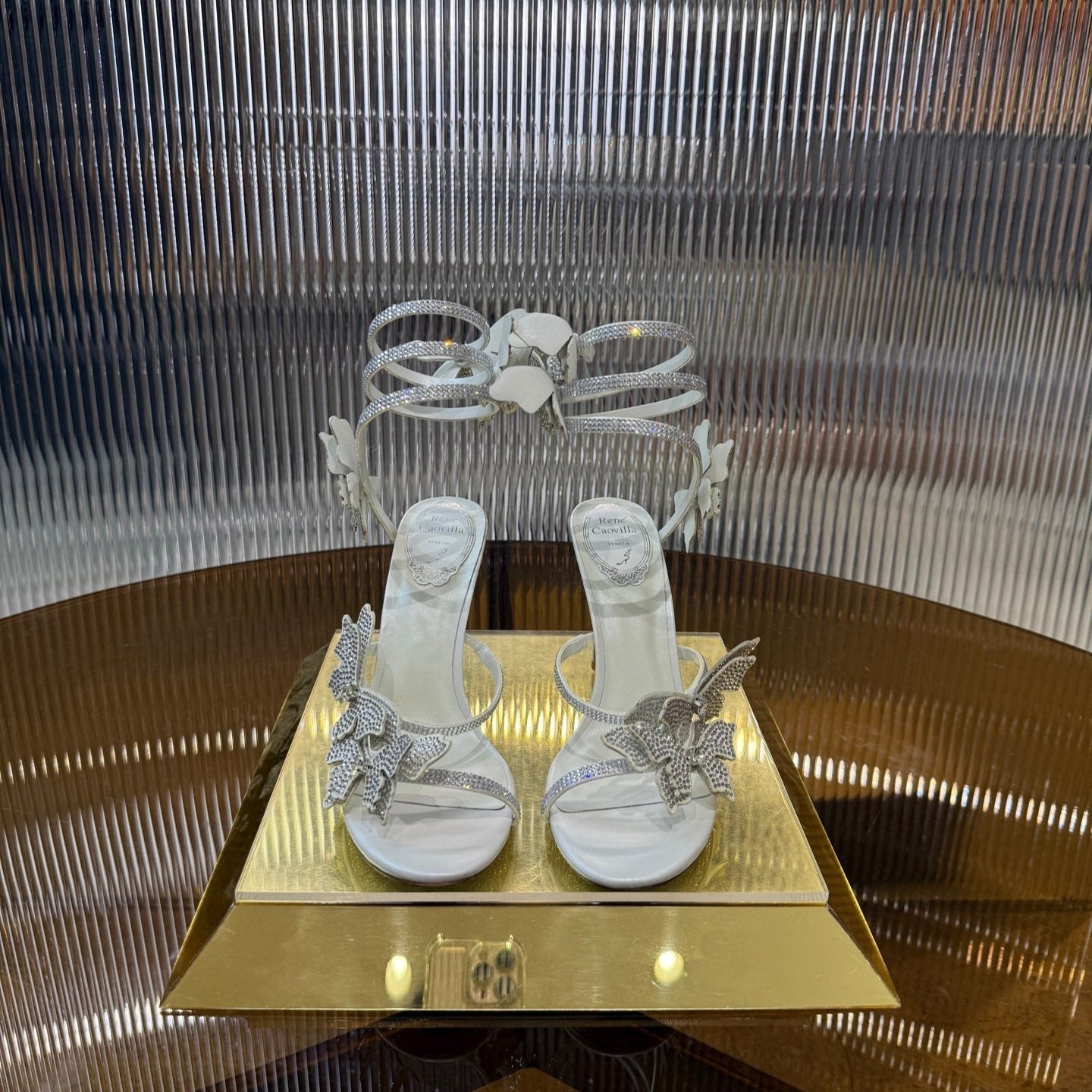 RC 25C Stiletto Sandals White Silk Rhinestone 275775