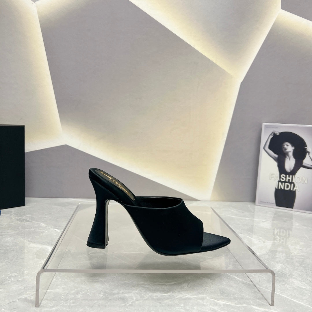 SL GOLDIE MULES BLACK SATIN