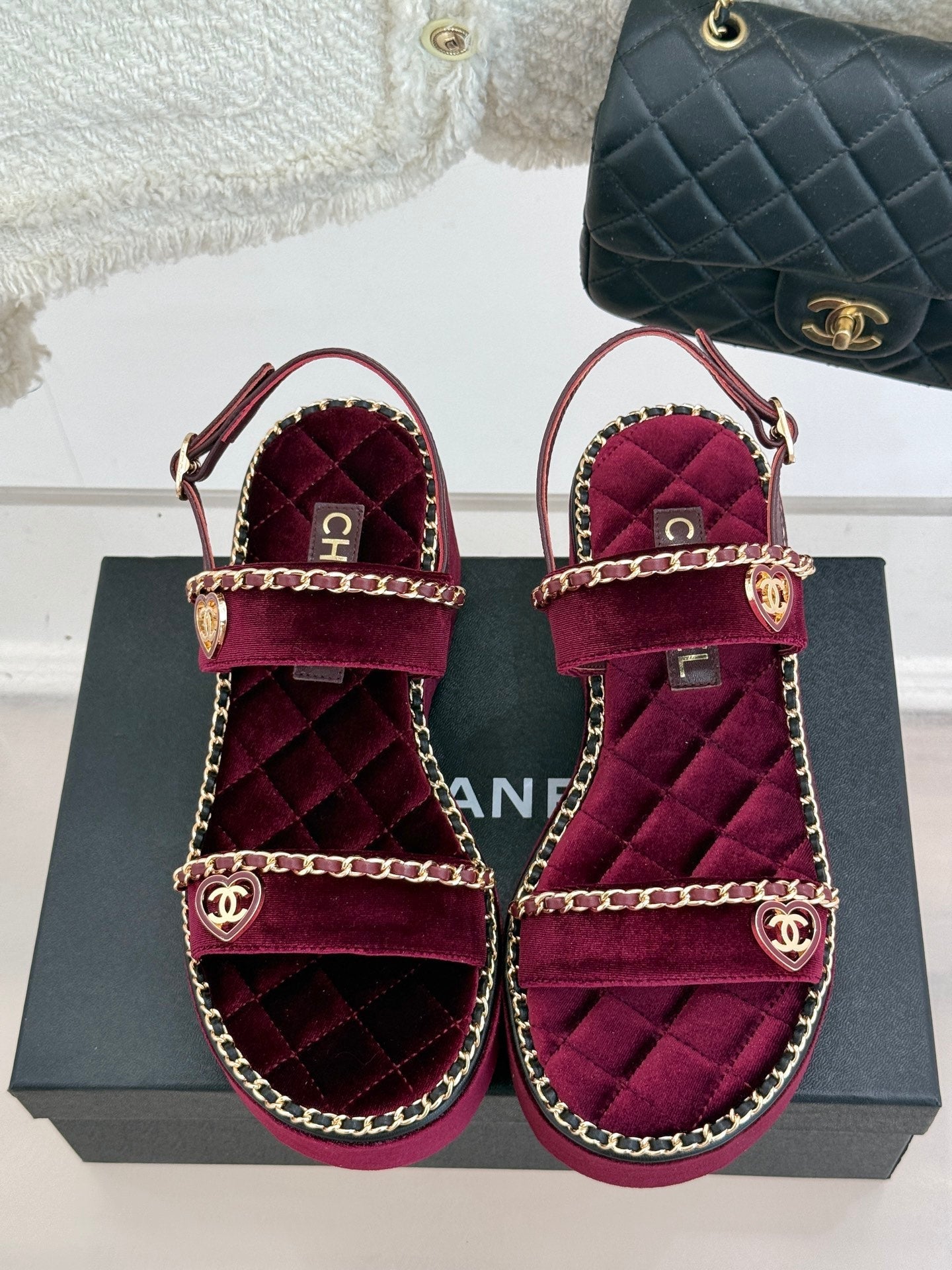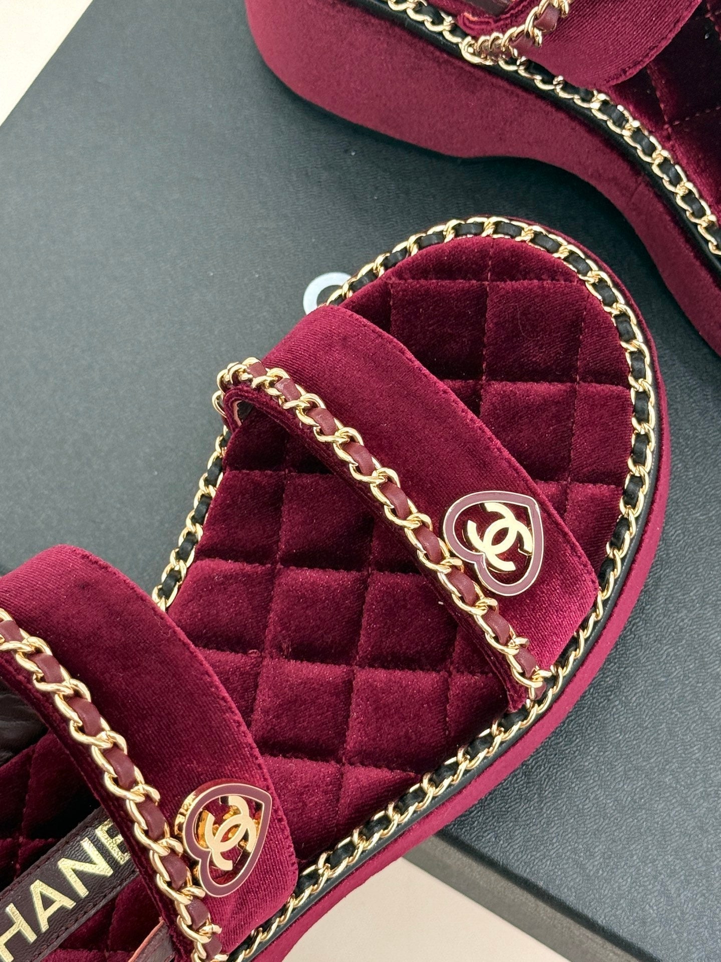 THICK-SOLED CHAIN HEART SANDAL IN PLUM PURPLE VELVET