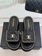 THICK-SOLED CHAIN HEART SLIPPER IN BLACK LAMBSKIN