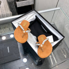 THONG SLIDE IN BRONZE BROWN SUEDE WITH WHITE CRYSTALS