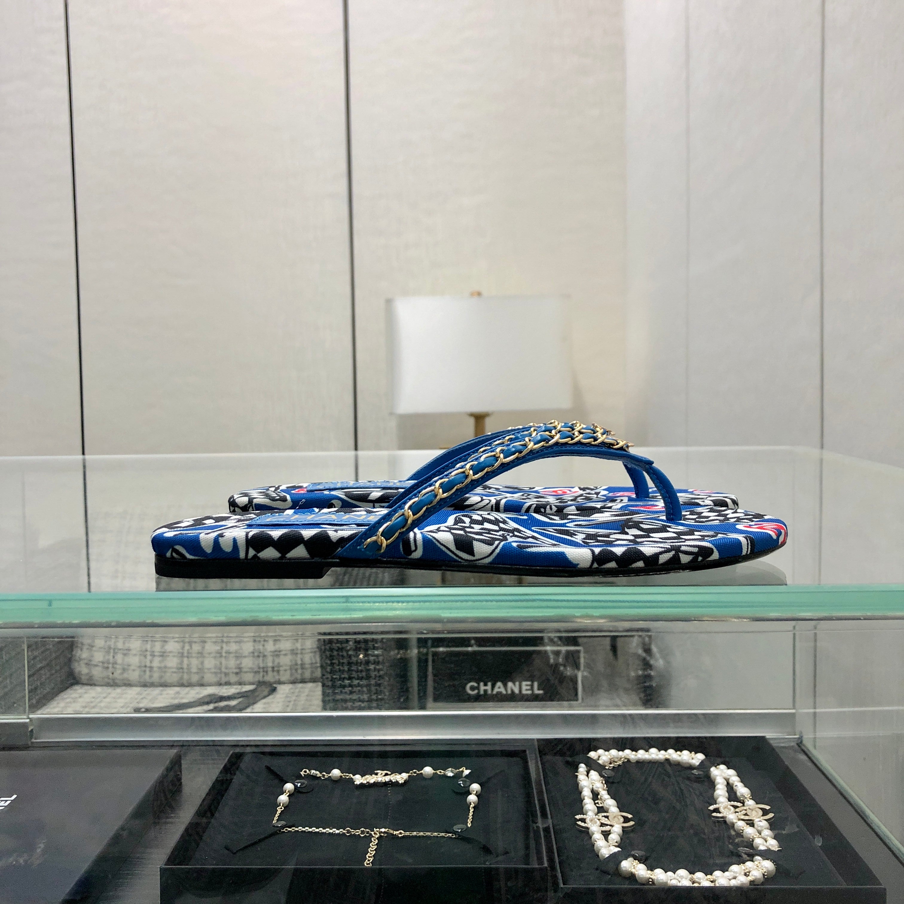 THONG SLIDE IN COBALT BLUE MIX COLORFUL FLORAL FABRIC