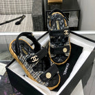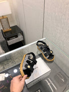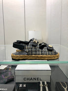 VELCRO SANDALS IN BLACK LAMBSKIN AND TWEED FABRIC