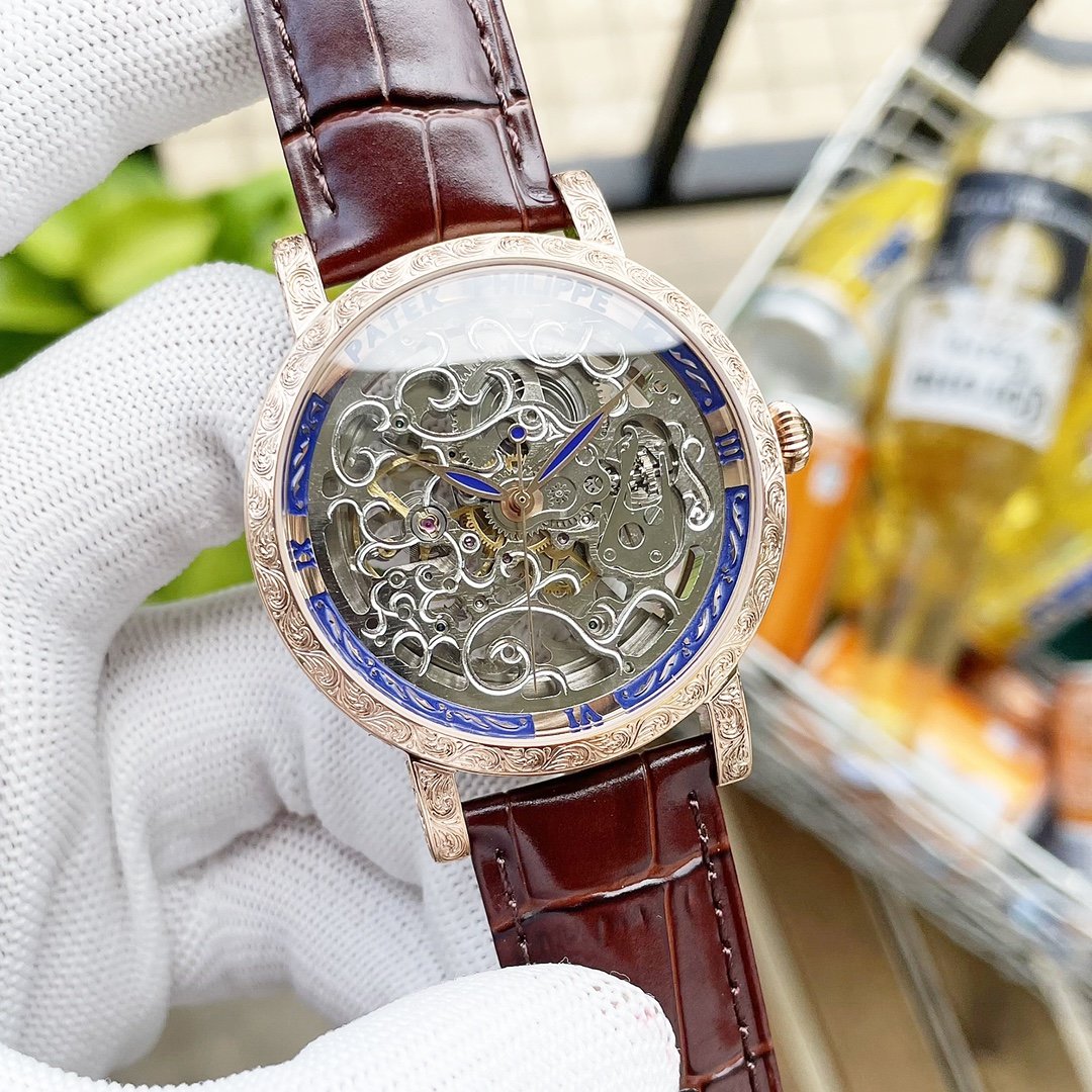 CALATRAVA SKELETON ENGRAVED HAND LEATHER STRAP