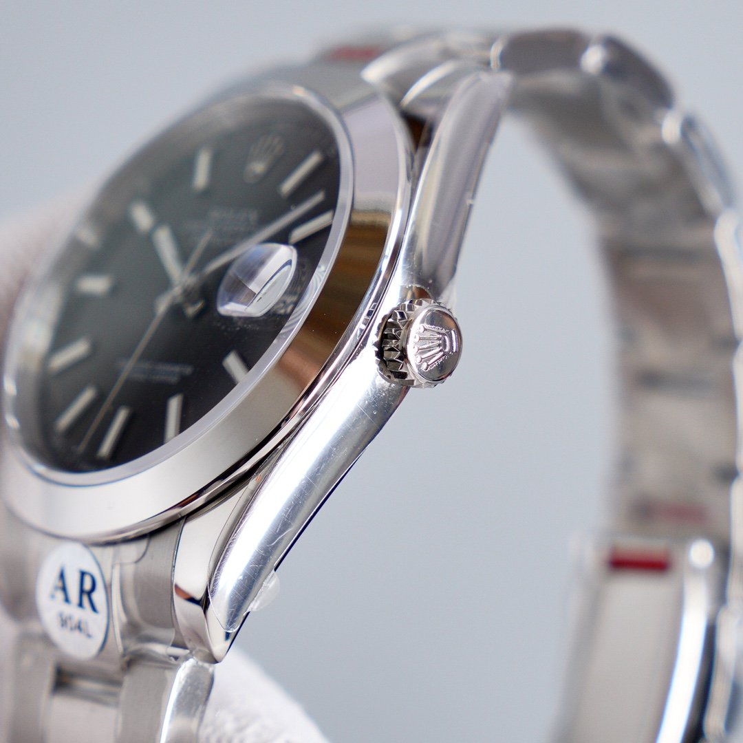 DATEJUST 40MM SMOOTH BEZEL STEEL CASE BLACK LEATHER