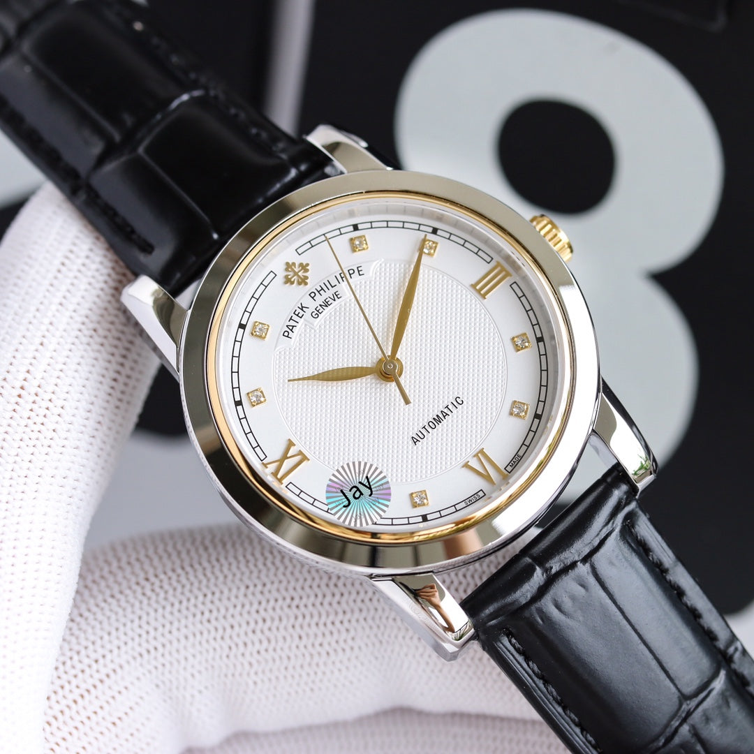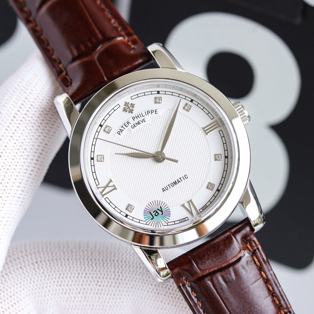 PATEK CALATRAVA 40MM WHITE DIAL DIAMOND BEZEL