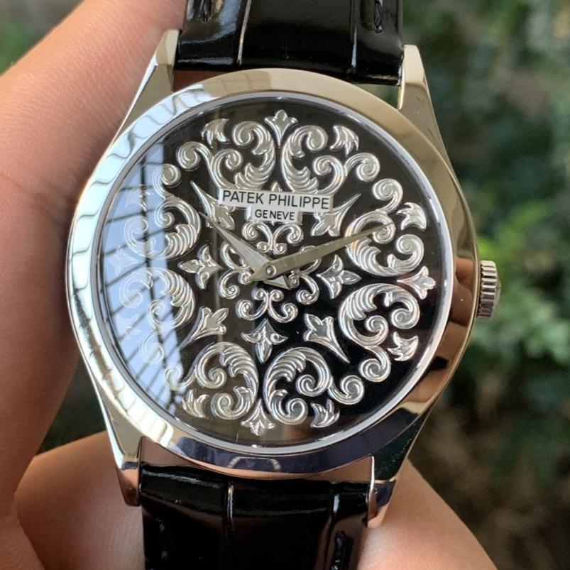 PATEK CALATRAVA 38 PLATINUM HAND-ENGRAVED BLACK DIAL