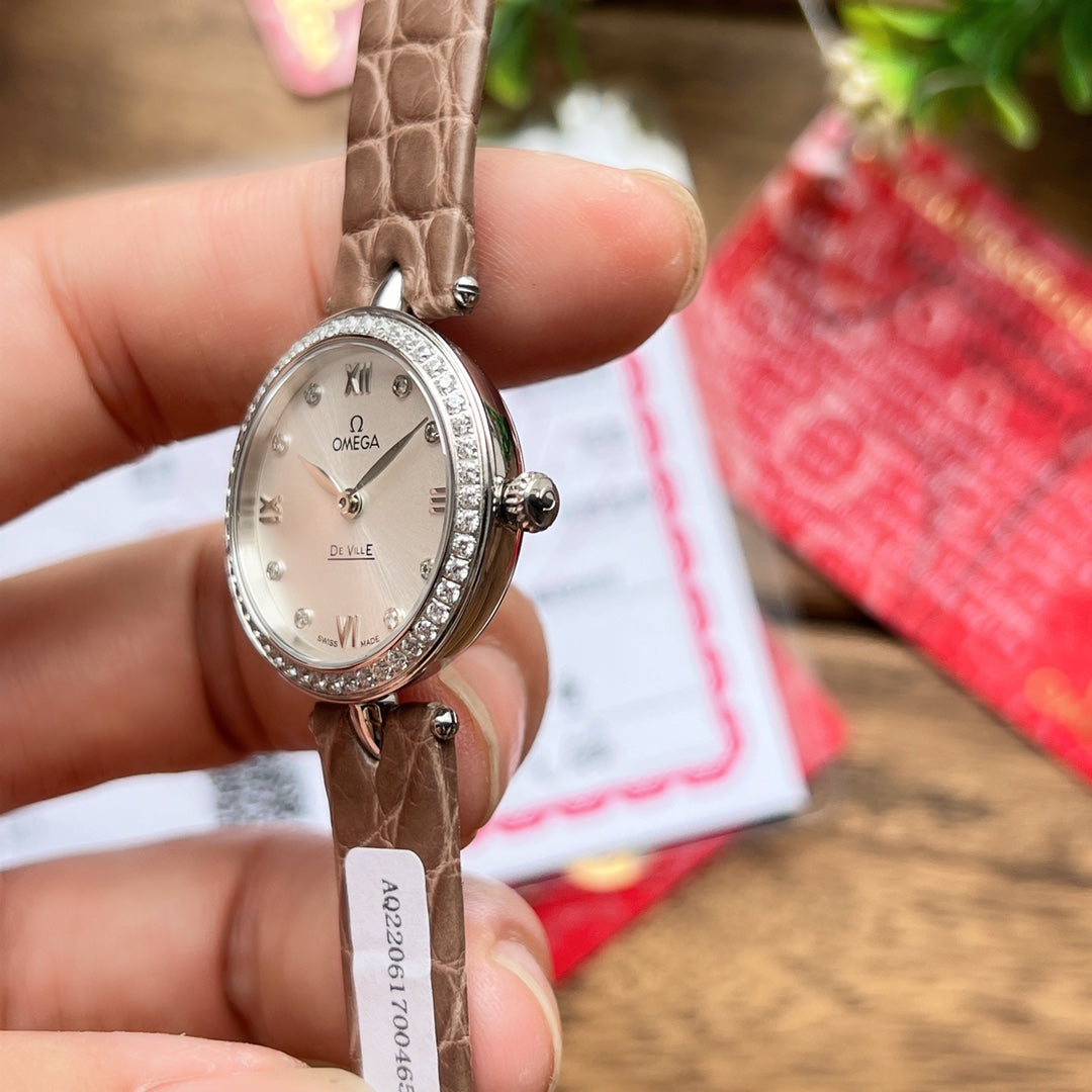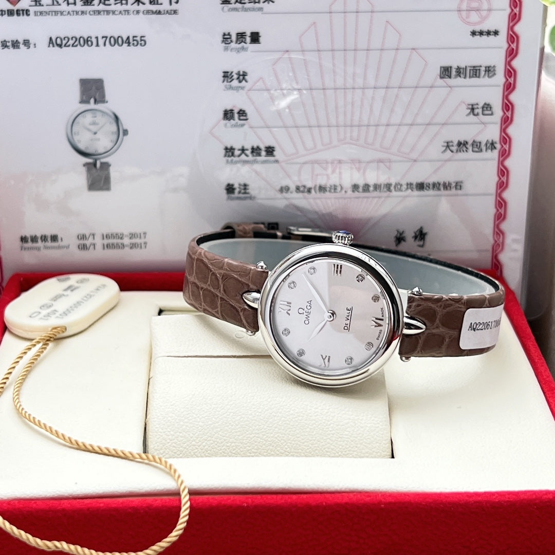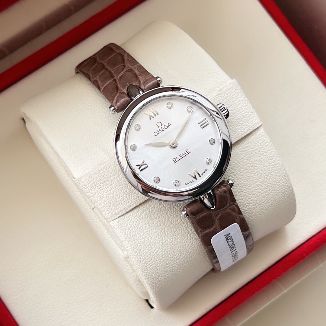 Omega De Ville 27.4mm Silver Brown Leather