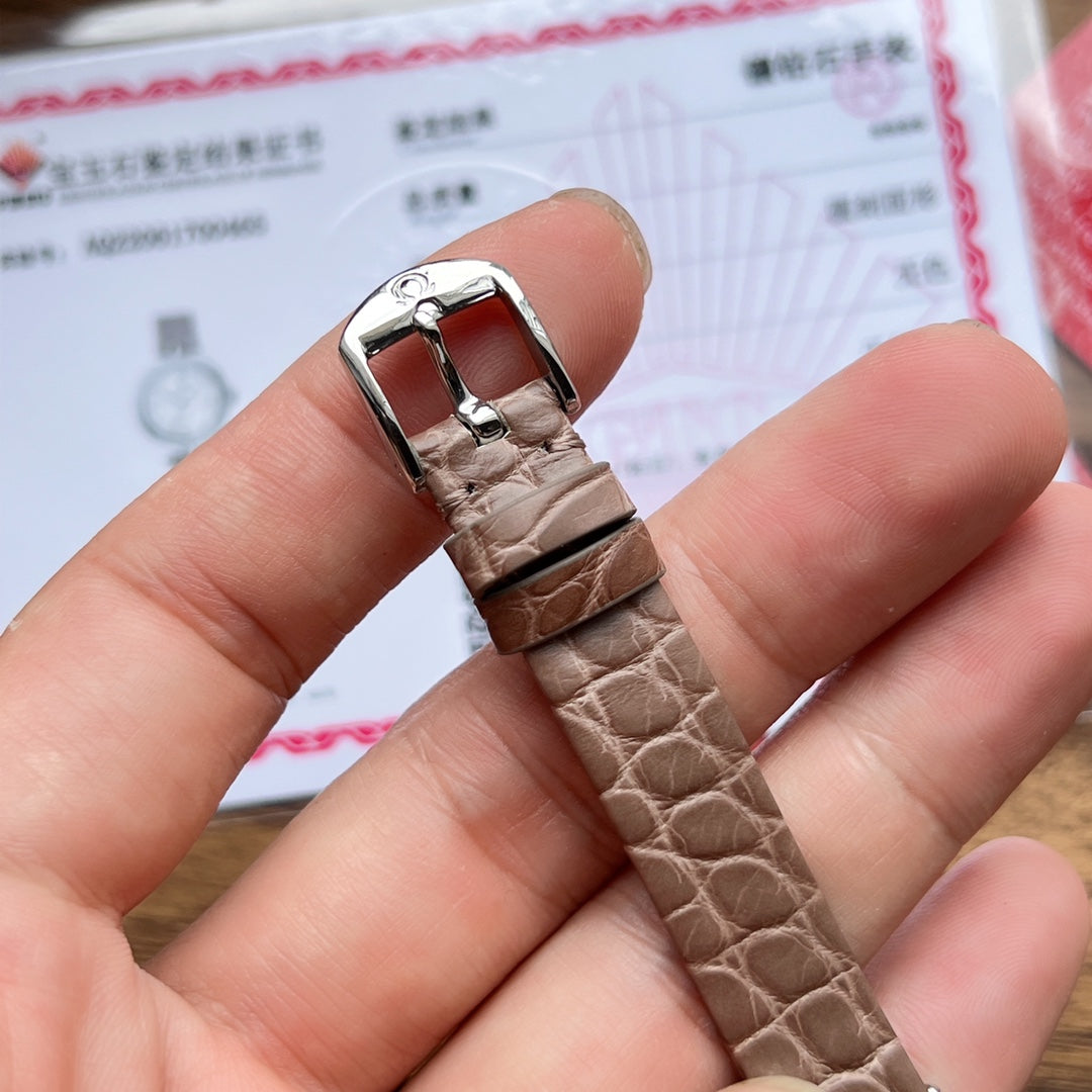 Vintage Baignoire 21mm Pink Gold Diamond Case Khaki Leather