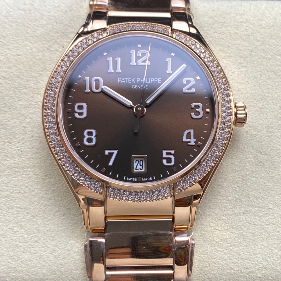 PATEK Twenty-Four 36mm Diamond Pink Gold Chocolate Dial