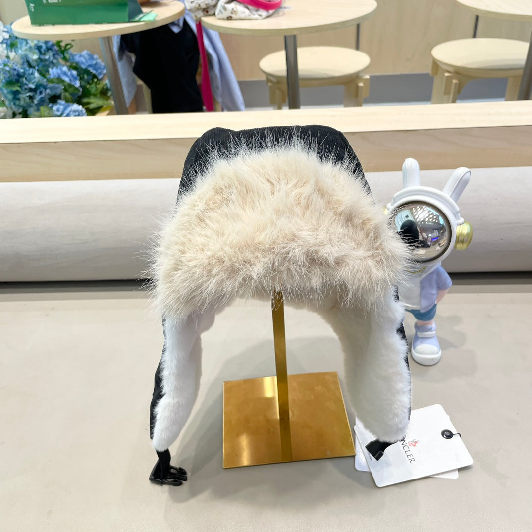 AVATOR HAT IN BLACK CORDUROY AND FLEECE-LINED 434984