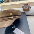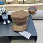 BAKER BOY HAT IN COFFEE BROWN COTTON AND LEATHER 428245