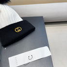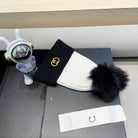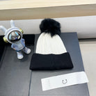 BEANIE HAT IN BLACK MIX WHITE WOOL AND FOX FUR 422504