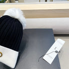 BEANIE HAT IN BLACK MIX WHITE WOOL AND FOX FUR 422524