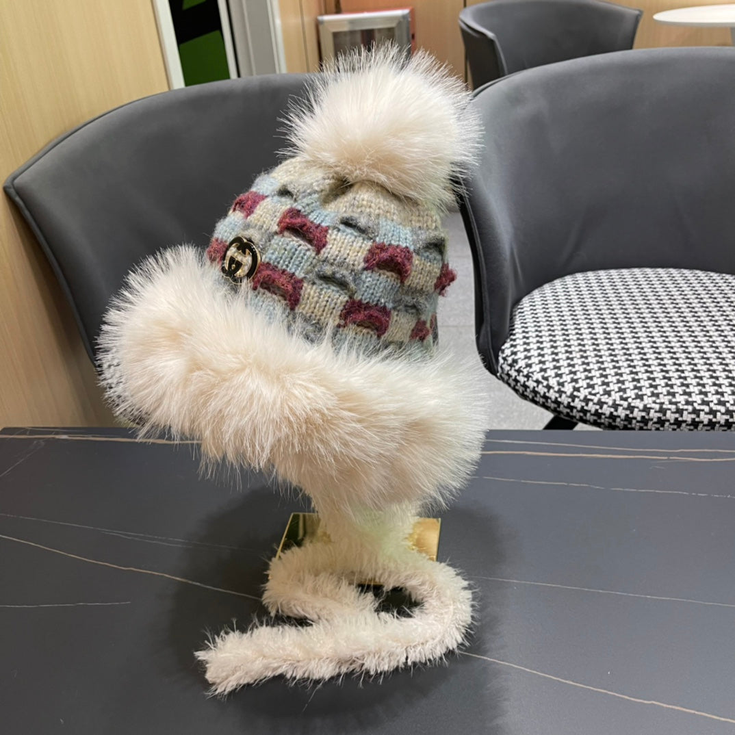 BEANIE HAT IN COLORFUL WOOL AND RABBIT FUR 392114