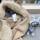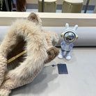 BEANIE HAT IN COSMIC LATTE BEIGE WOOL AND LAMB FUR 435073