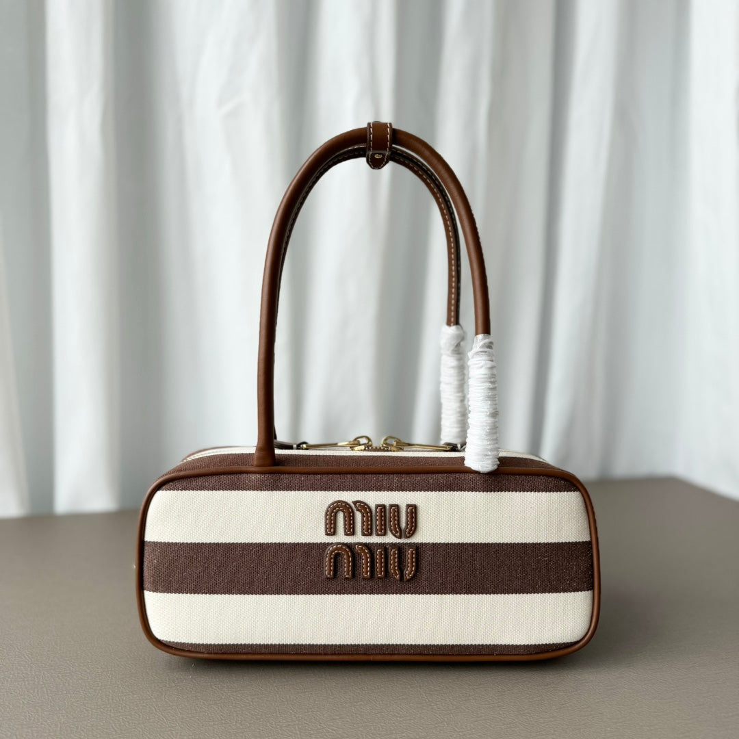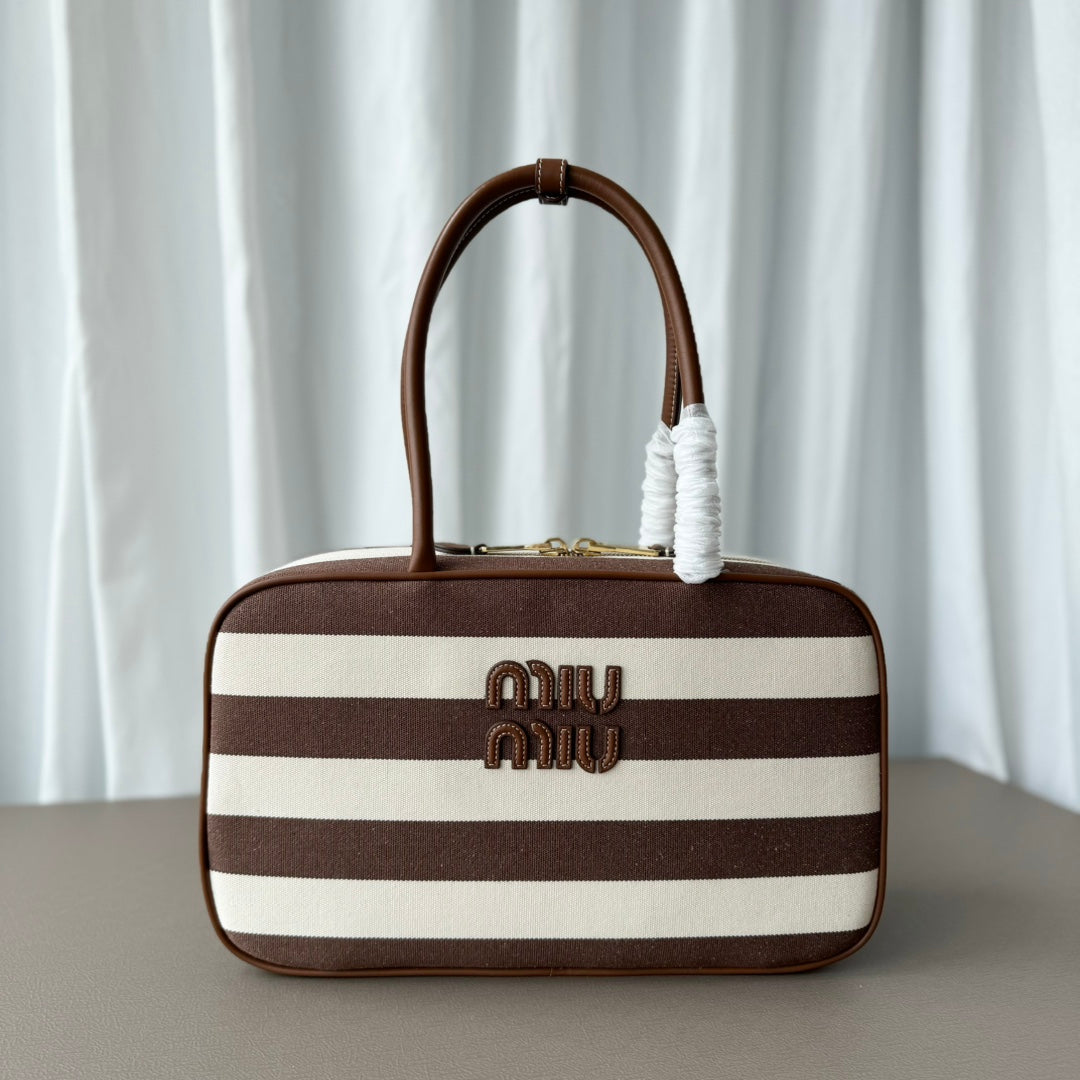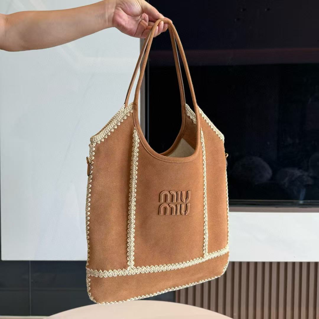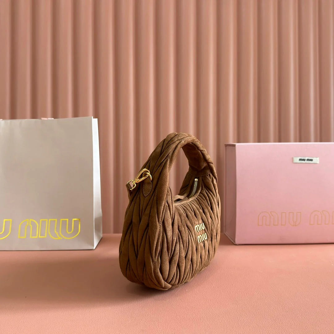 BEAU TOP HANDLE BAG 34 IN COFFEE BROWN SUEDE EMBOSSED LOGO