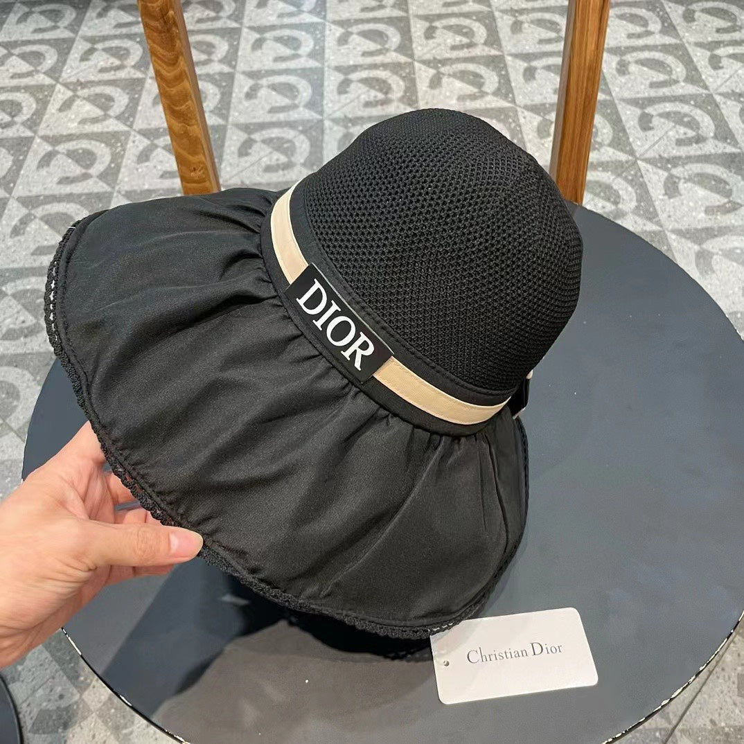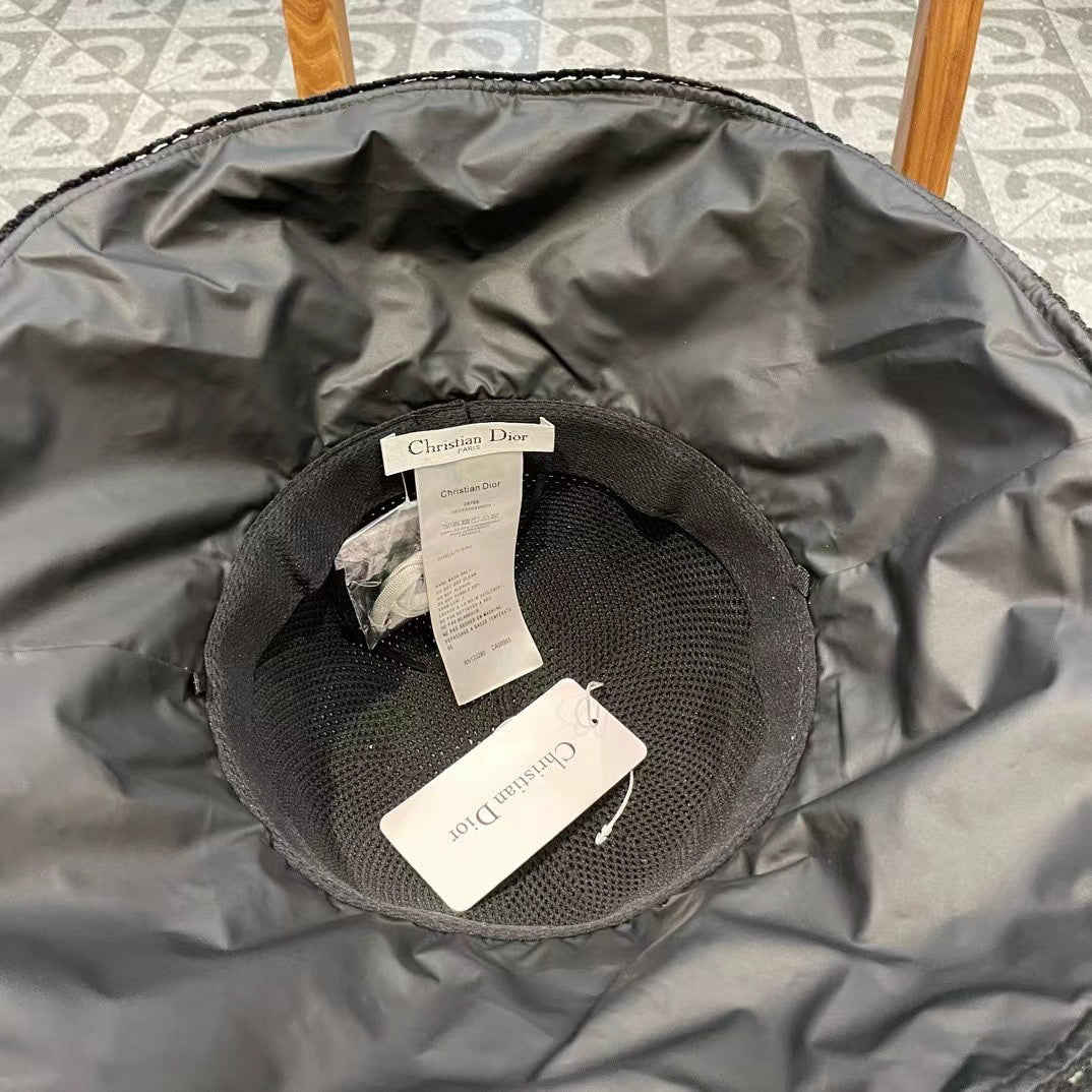 BLACK STRAW BUCKET HAT WITH BOW FABRIC BORDER 439646