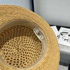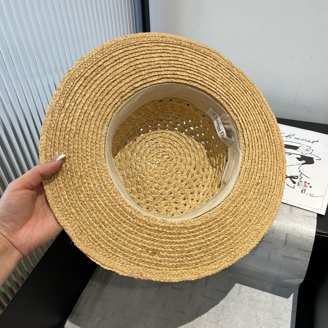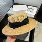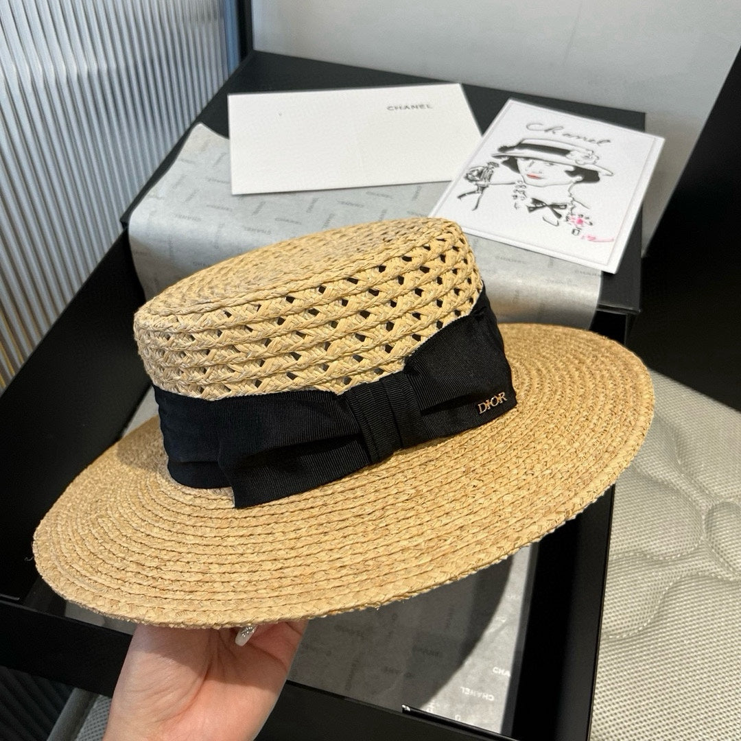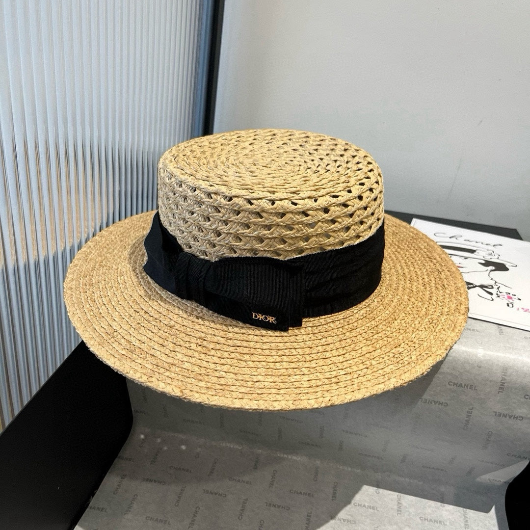 BOATER HAT IN BEIGE RAFFIA WITH BLACK FABRIC