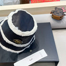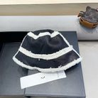 BUCKET HAT IN BLACK LAMBSKIN AND WHITE FLEECE 426223