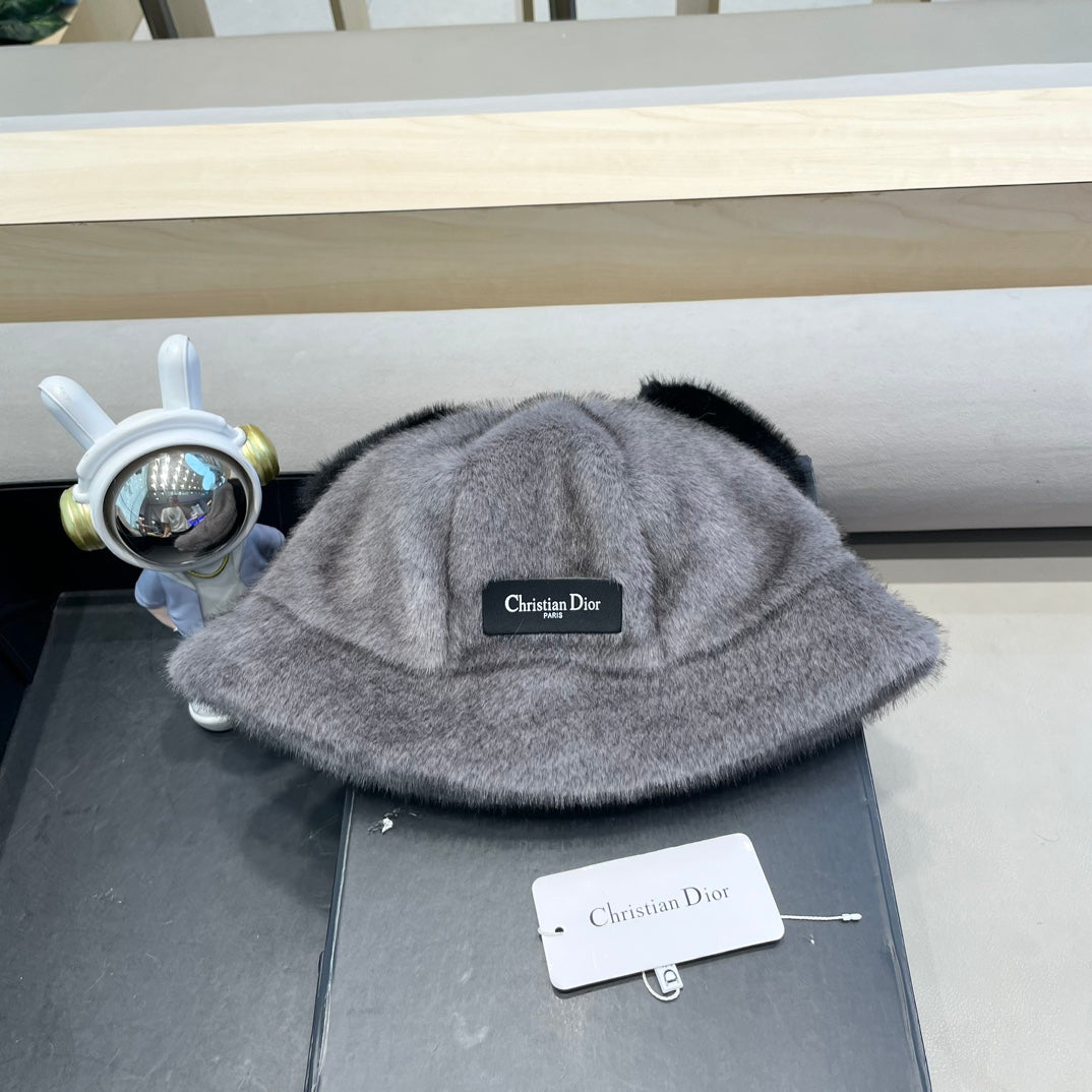 BUCKET HAT WITH CUTE BEAR EARS IN SILVER GRAY RABBIT FUR 434966